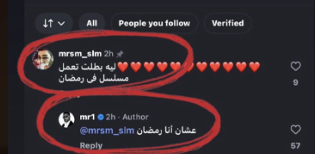 وكتب لهُ أحد المتابعين: “ليه بطّلت تعمل مسلسل في رمضان؟”، ليرد عليه مازحا: “عشان أنا رمضان”.