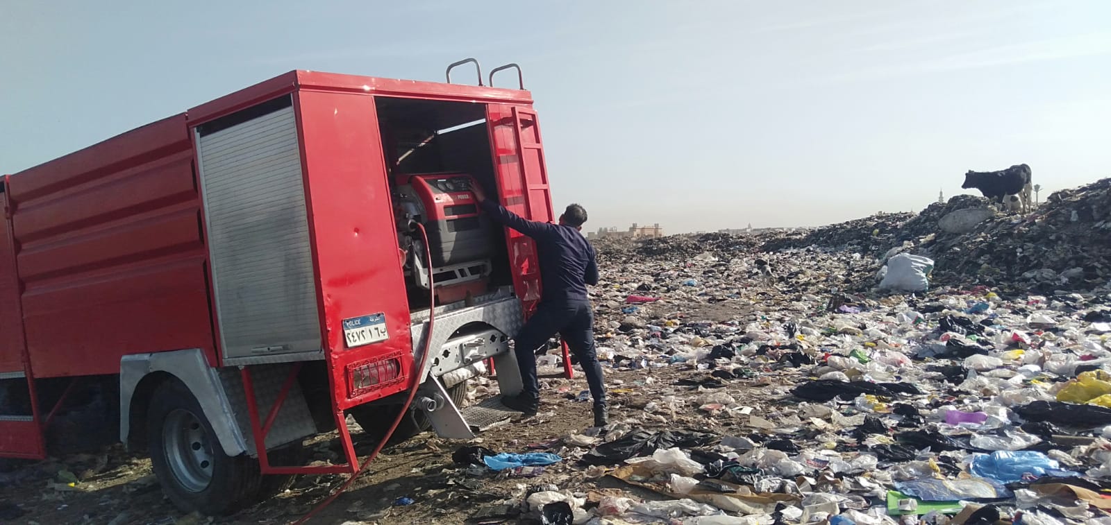 ورد بلاغ الى مديرية أمن بورسعيد يفيد بنشوب حريق في مجموعة مخلفات بجوار سوق الجملة بحي الزهور.