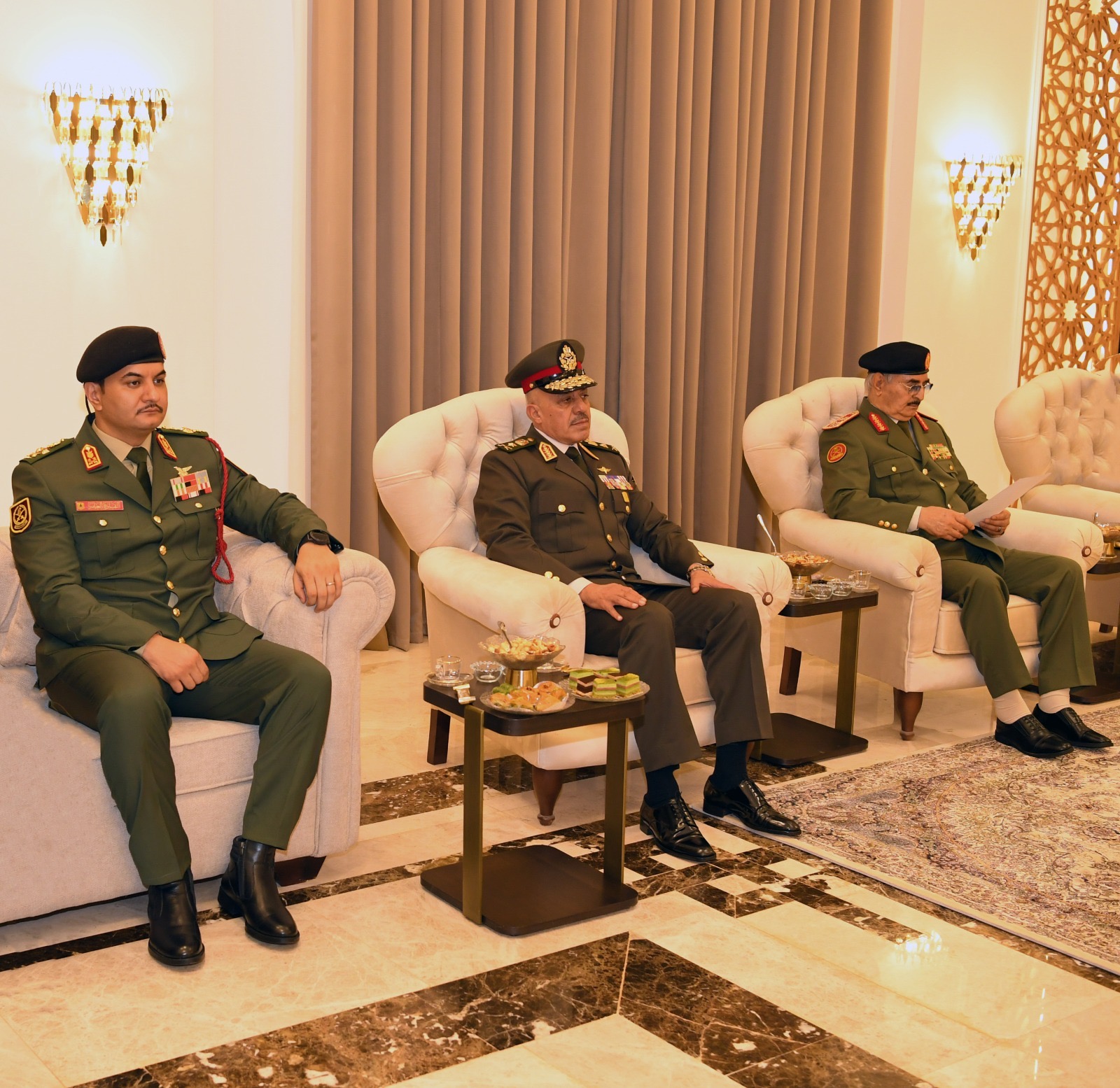 والتقى رئيس أركان حرب القوات المسلحة بالفريق أول ركن خالد حفتر رئيس الأركان العامة للقوات المسلحة العربية الليبية وتناول اللقاء مناقشة سبل دعم آفاق التعاون العسكري بحضور وفد من كلا البلدين.