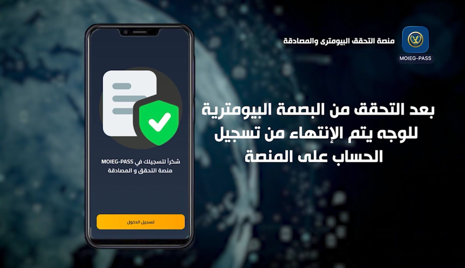 والخدمة متاحة لكافة المواطنين ويمكن إتاحتها للجهات المختلفة من خلال تحميل التطبيق الخاص بالتحقق البايومترى والمصادقة MOIEG-PASS على الهواتف الذكية .