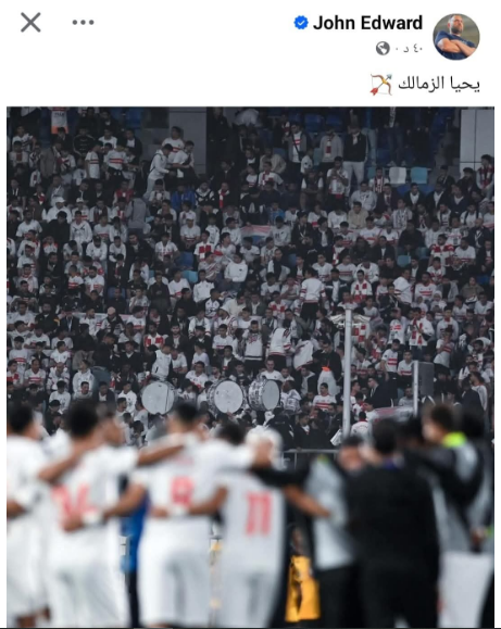 ونشر إدوارد، عبر حسابه الرسمي على موقع التواصل الاجتماعي “فيس بوك”، صورة لجماهير الزمالك في مدرجات المباراة، وعلق عليها: "يحيا الزمالك".