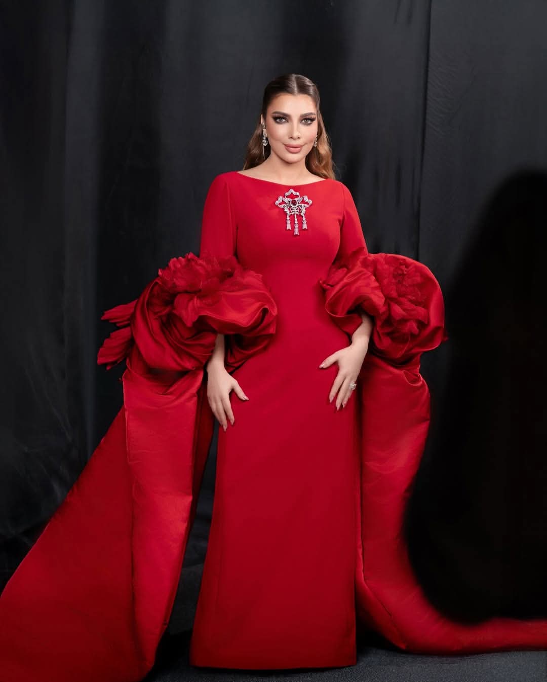أما الفنانة منه فضالي فاختارت فستاناً أحمر أنيقاً جاء بتصميم أنثوي لافت، عكس أجواء عيد الحب بامتياز. التصميم أبرز قوامها، واعتمدت معه إكسسوارات ناعمة حتى تتركز الأنظار على الفستان نفسه، فيما جاء المكياج بدرجات دافئة زادت من جاذبية الإطلالة.