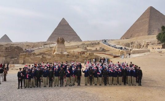 وتضمنت الزيارة جولة شباب وطلائع المناطق الحضارية الجديدة بالأهرامات حيث توجهوا لزيارة هذا الأثر الذى يُعد واحد من عجائب الدنيا ، وهنا يقف الزائر أمام معجزة خالدة تتحدى الزمن وتروى قصة عبقرية الإنسان المصرى عبر آلاف السنين.