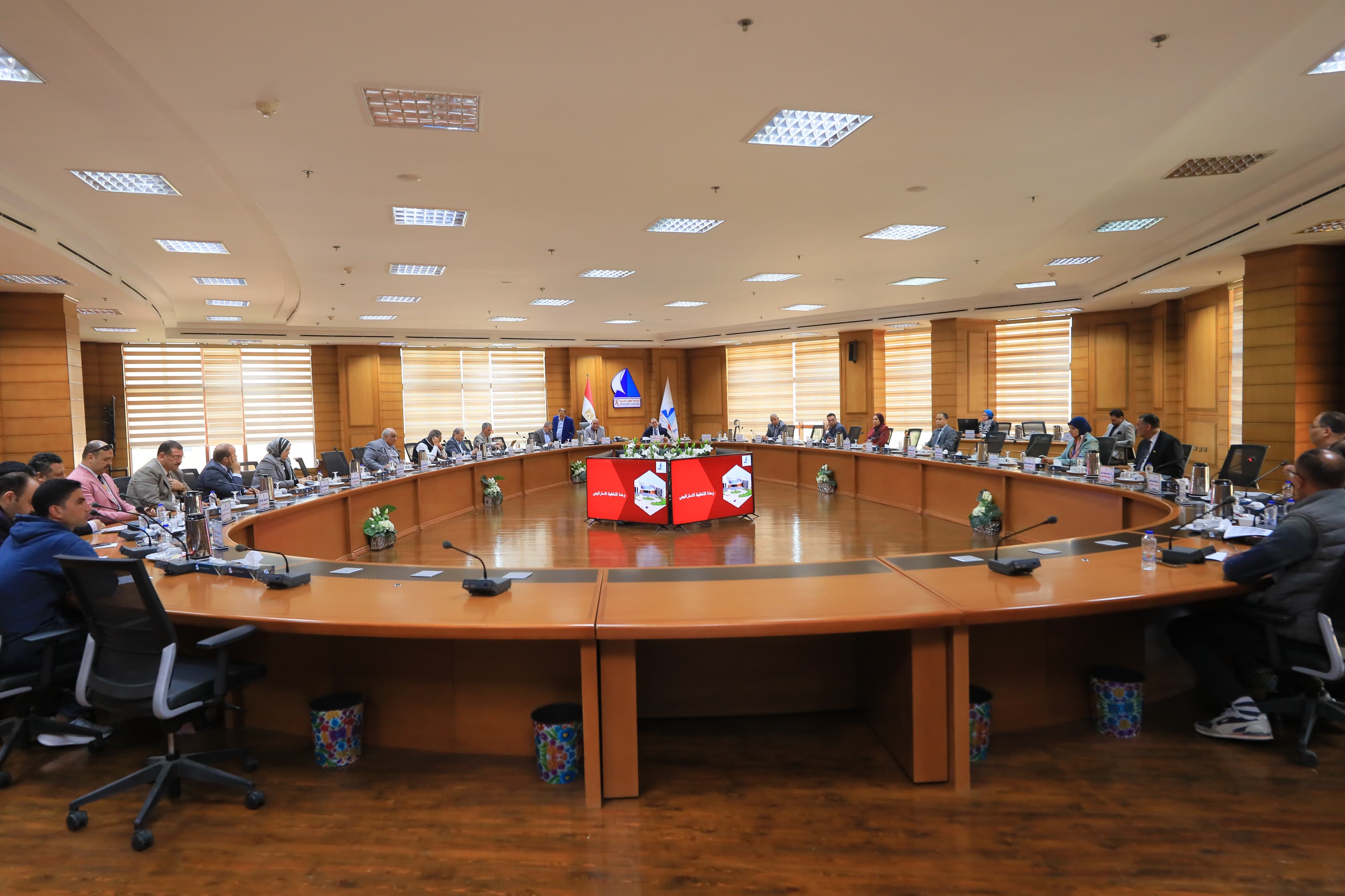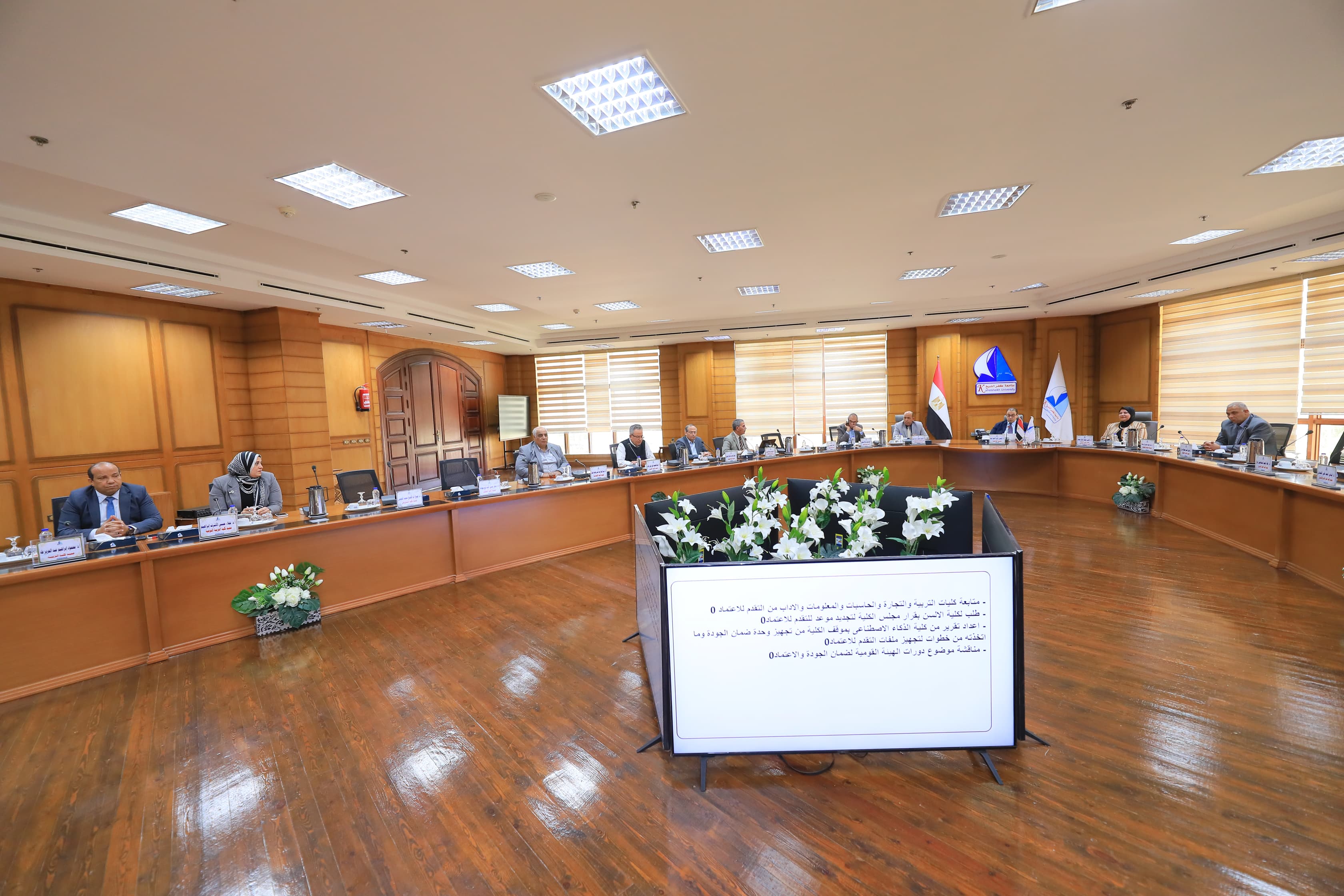 عقد مجلس مشروعات التطوير بجامعة كفر الشيخ برئاسة الدكتور يحيى عيد رئيس الجامعة، اليوم، جلسته الدورية بقاعة المجلس، بحضور نواب رئيس الجامعة وأمين عام الجامعة وعمداء كليات الجامعة أعضاء المجلس، ومديري وحدات ومراكز التطوير بالجامعة.