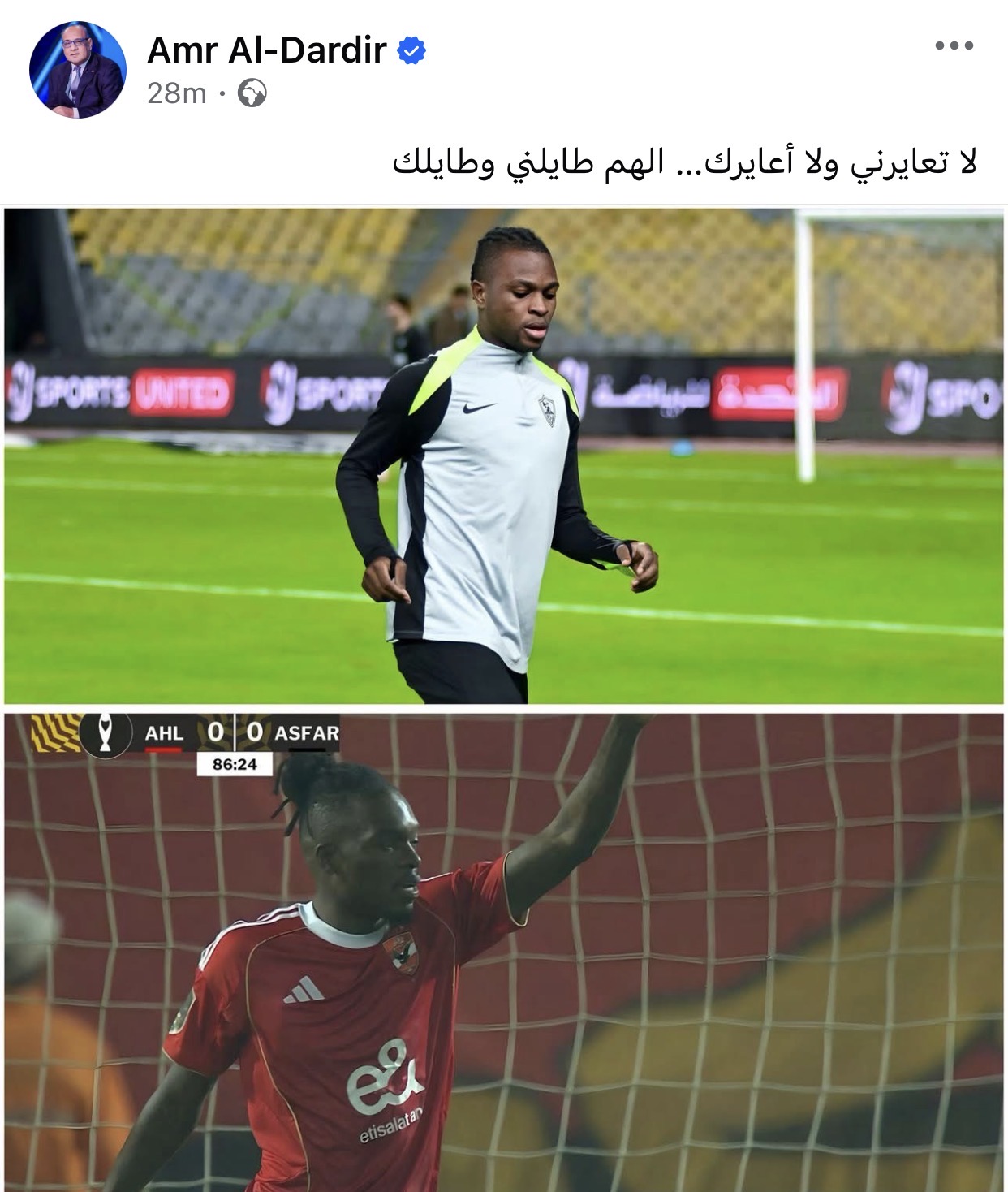 ونشر الدردير عبر حسابه على فيسبوك صورة لكامويش وشيكو بانزا وكتب "لا تعايرني ولا أعايرك… الهم طايلني وطايلك"