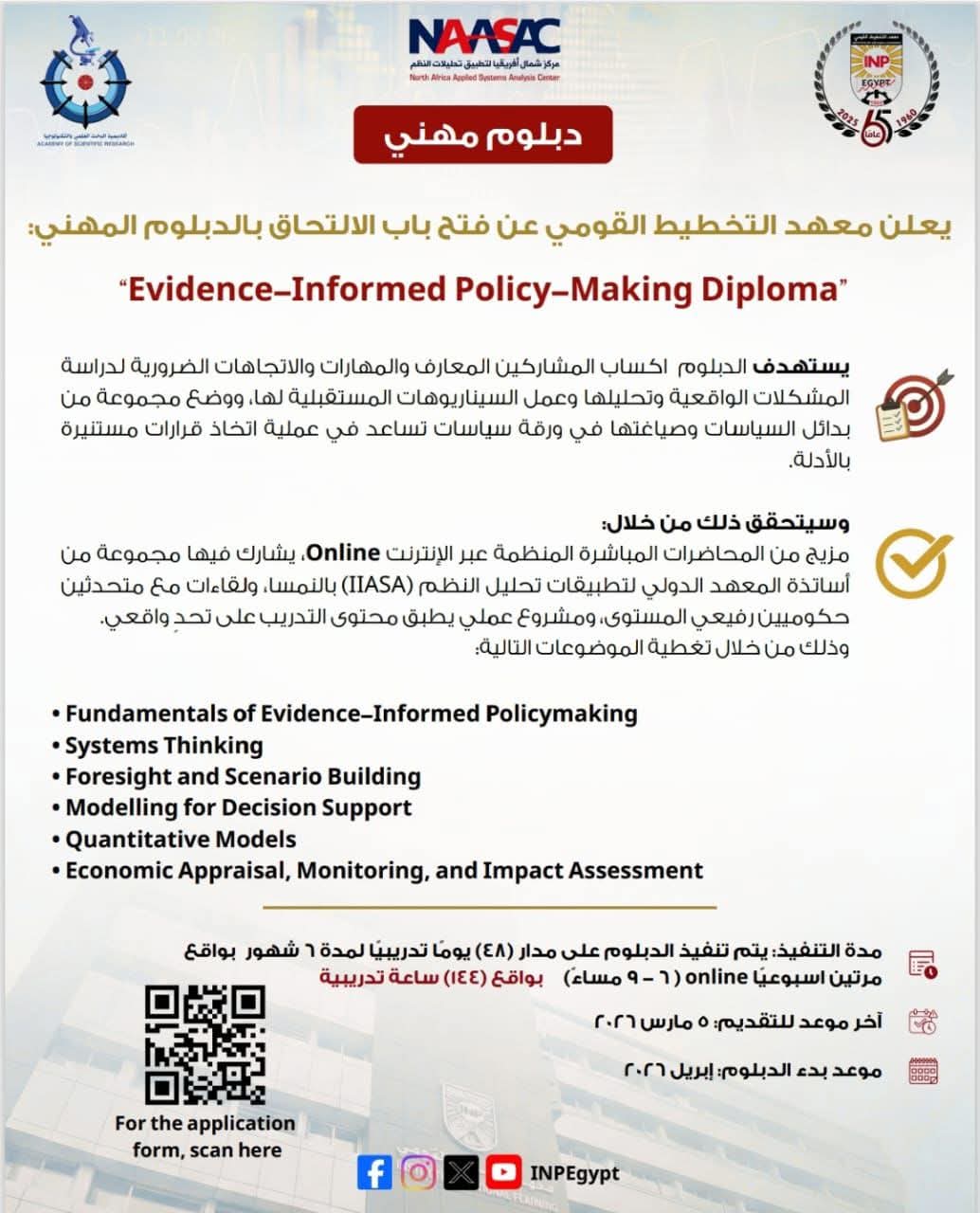 ويقدم الدبلوم مركز شمال أفريقيا لتطبيق تحليلات النظم (NAASAC) وهو شراكة بين معهد التخطيط القومي والمعهد الدولي لتطبيقات تحليل النظم (IIASA) بالنمسا وأكاديمية البحث العلمي والتكنولوجيا.