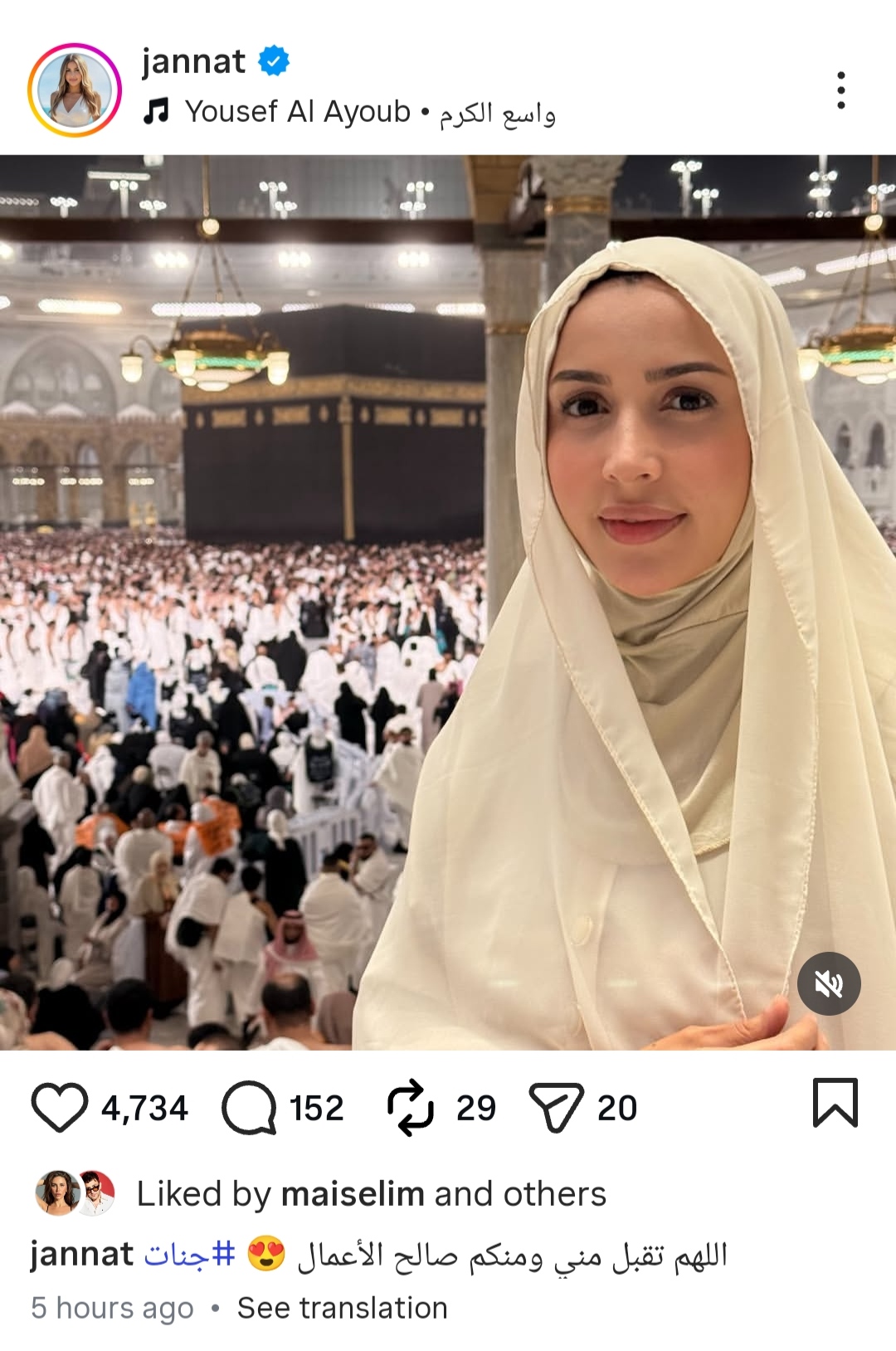 و علقت جنات علي الصورة عبر حسابها على إنستجرام: "اللهم تقبل مني ومنكم صالح الأعمال".