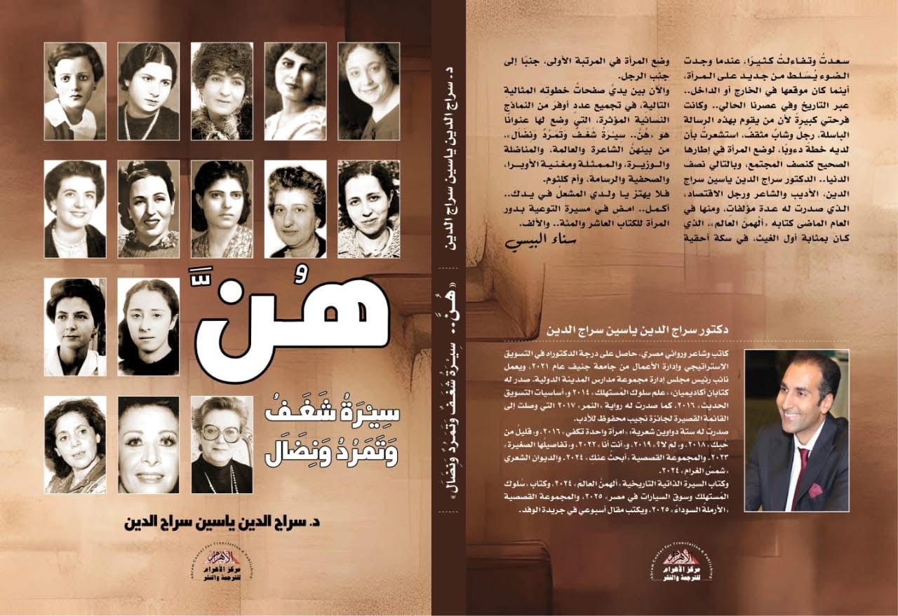 أطلق الكاتب والشاعر والروائي الدكتور سراج الدين ياسين سراج الدين كتابه الأحدث بعنوان "هُنَّ: سيرةُ شغفٍ وتمرّدٍ ونضال"، الصادر عن مركز الأهرام للترجمة والنشر، والذي شارك في معرض القاهرة الدولي للكتاب في دورته السابعة والخمسين.