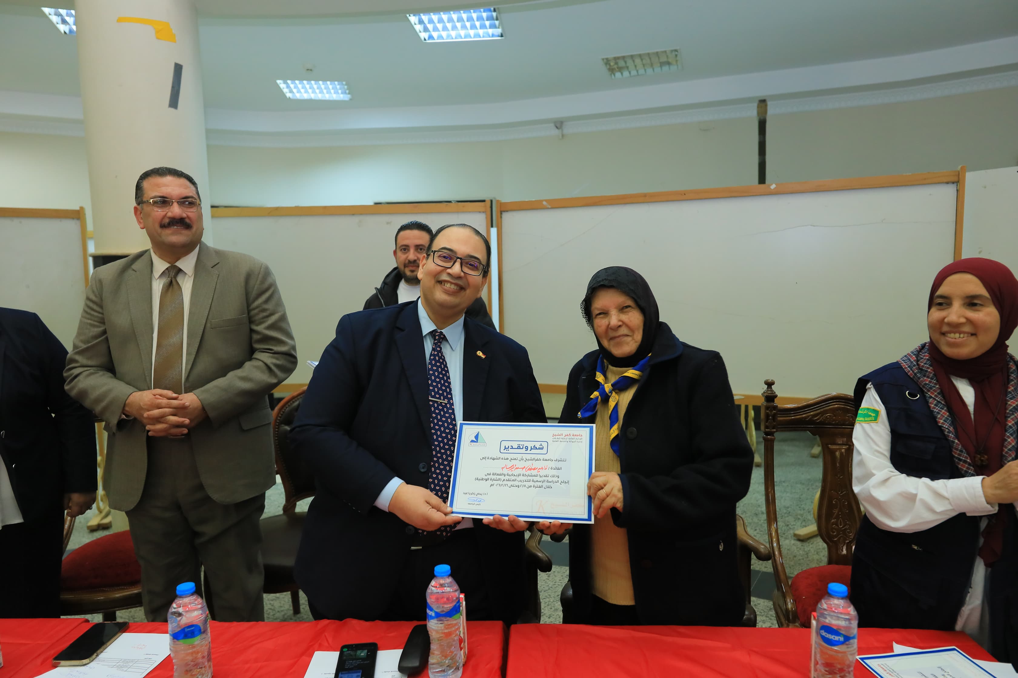 وفي ختام الفعاليات، سلم رئيس الجامعة المشاركات إفادات حضور لحين الحصول على إجازة الشارة الوطنية من الجمعية المركزية للمرشدات المصرية، تقديرًا لاجتيازهن متطلبات الدراسة واستكمال البرنامج التدريبي بنجاح.