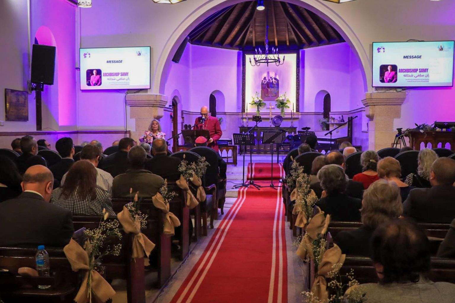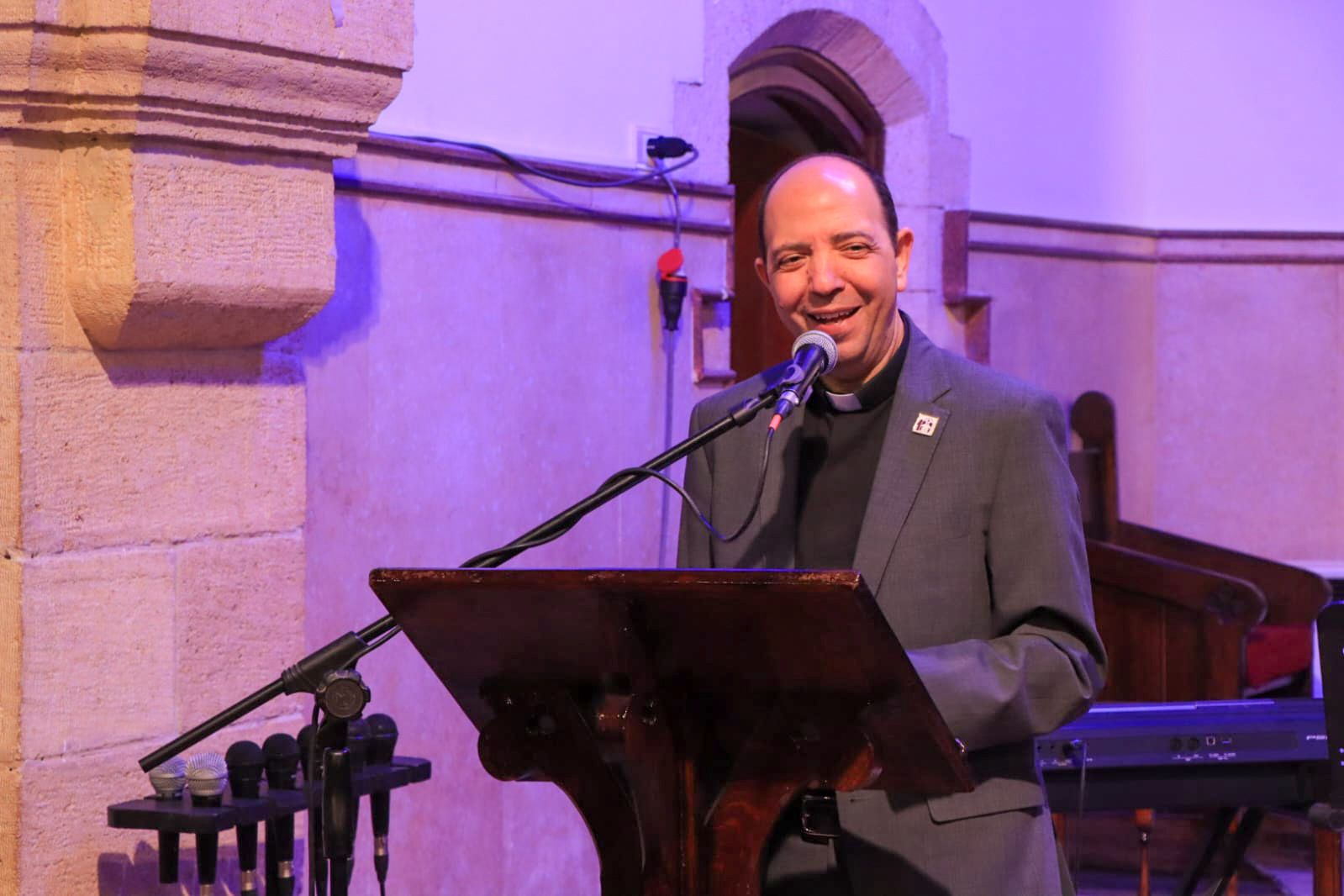 رحب القس عماد بالحاضرين قائلاً: شرفٌ عظيمٌ لي اليوم أن أكون راعيًا لهذه الكنيسة في هذا التوقيت المبارك، حيث نحتفل بمرور مئة عام على تأسيسها. ورغم أن هناك رعاة كثيرين خدموا أكثر مني وكان لهم الفضل الأكبر، فإن الظروف شاءت أن أكون حاضرًا في هذا الوقت لأشارككم هذه المناسبة المجيدة. يسعدني أن أرحب بكم جميعًا لنحتفل معًا بنعمة الرب في وسطنا، وبالنيابة عن المطران الدكتور سامي فوزي، وعن شعب الكنيسة ومجلسها، نرحب بكم جميعًا ترحيبًا حارًا، وبشكل خاص أرحب بجميع ضيوفنا الكرام.
