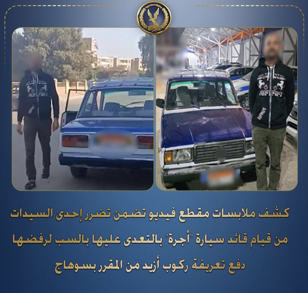 كشفت الصفحة الرسمية لـ وزارة الداخلية المصرية ملابسات مقطع فيديو تم تداوله عبر مواقع التواصل الاجتماعي، تضمن شكوى إحدى السيدات من قيام قائد سيارة أجرة بالتعدي عليها بالسب، إثر خلاف بينهما حول قيمة تعريفة الركوب بمحافظة سوهاج.