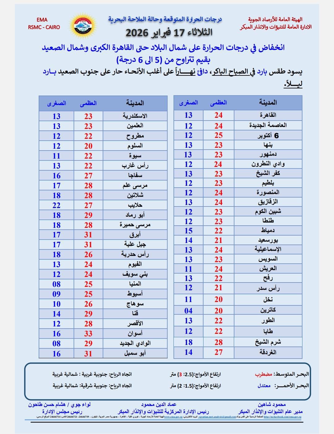 حالة الطقس اليوم الثلاثاء 17 فبراير 2026