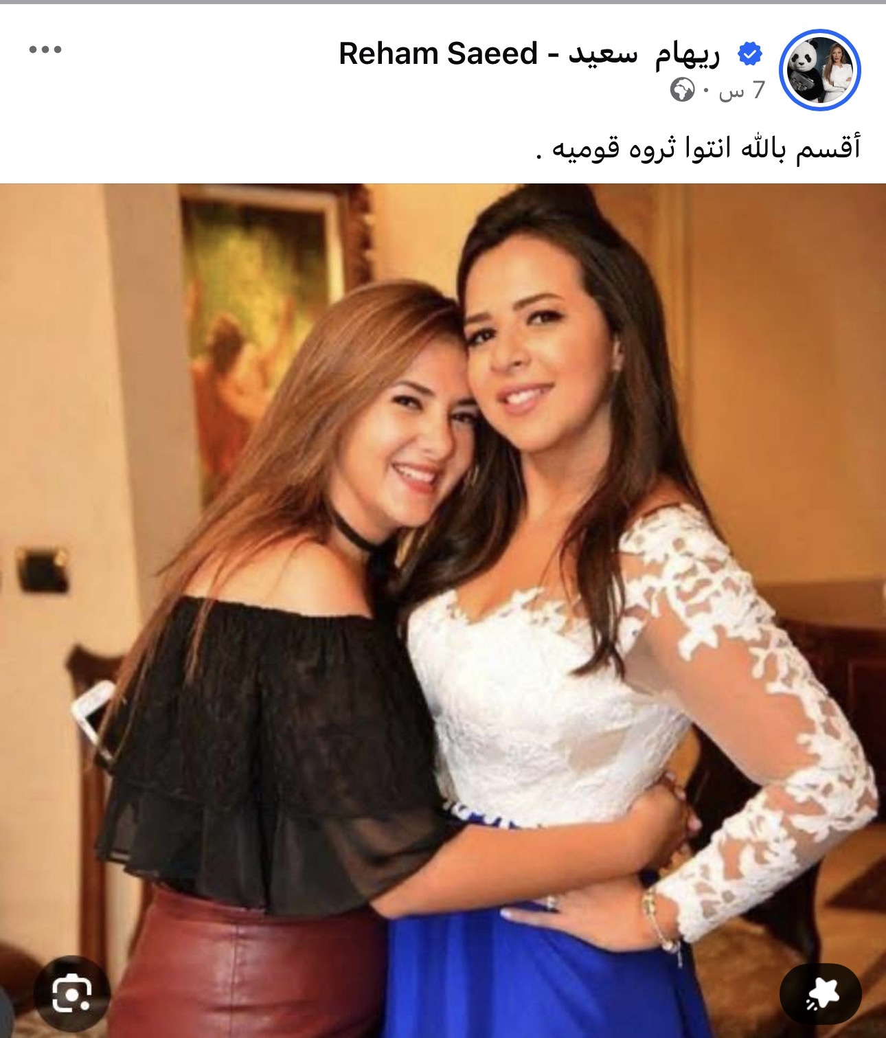 ونشر ريهام صورة لـ إيمي ودنيا سمير غانم ، وعلق قايلة: “أقسم بالله انتوا ثروة قومية”.