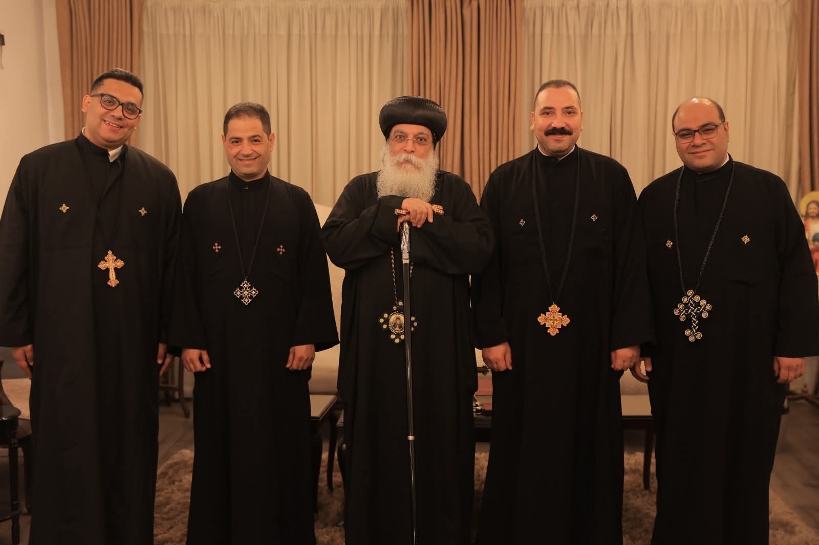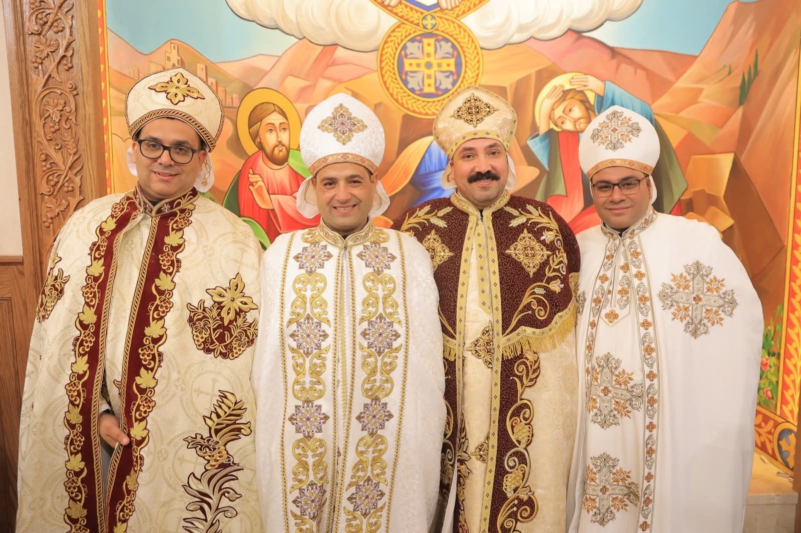 وسام نيافته عقب صلاة الصلح أربعة من الشمامسة، كهنة في درجة القسيسية، وهم:
