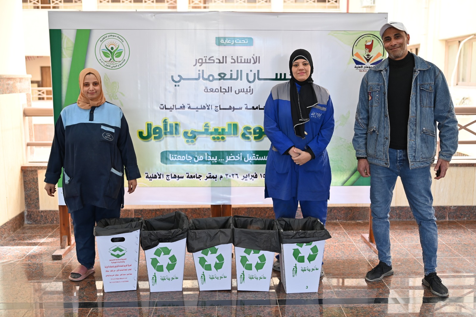 صرح الدكتور حسان النعاني رئيس جامعة سوهاج الاهليه انه دعمًا لفكر الاقتصاد الدائري، وترسيخًا لثقافة الحفاظ على البيئة داخل المجتمع الجامعي، تم توزيع حاويات صديقة للبيئة لكليات وادارات الجامعة، بهدف التخلص الآمن من المخلفات من خلال فرزها وفقًا لنوعها.