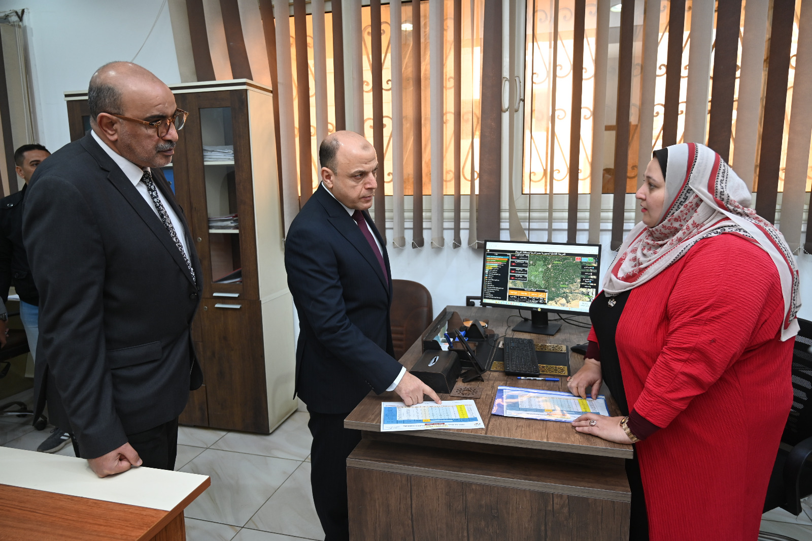 وخلال الجولة، استمع المحافظ إلى شرح مفصل من الأستاذة هبة جاب الله، مديرة مركز البنية المعلوماتية المكانية، حول تدقيق الملفات، والمتغيرات المكانية الخاصة بالمساحة العسكرية، ومنظومة الخريطة التفاعلية، بالإضافة إلى منظومة التخطيط لمراجعة التراخيص والتصالح ومنظومة أملاك الدولة، مع التأكيد على رفع جميع الحالات على المنظومة بانتظام وموافاته بتقارير صباحية ومسائية دورية.