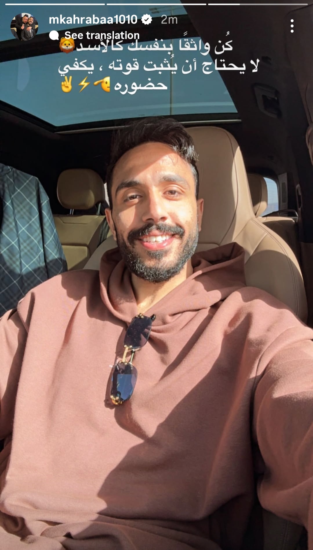 كتب كهربا :كن واثقا بنفسك كالأسد، لا يحتاج أن يثبت قوته، يكفي حضوره.