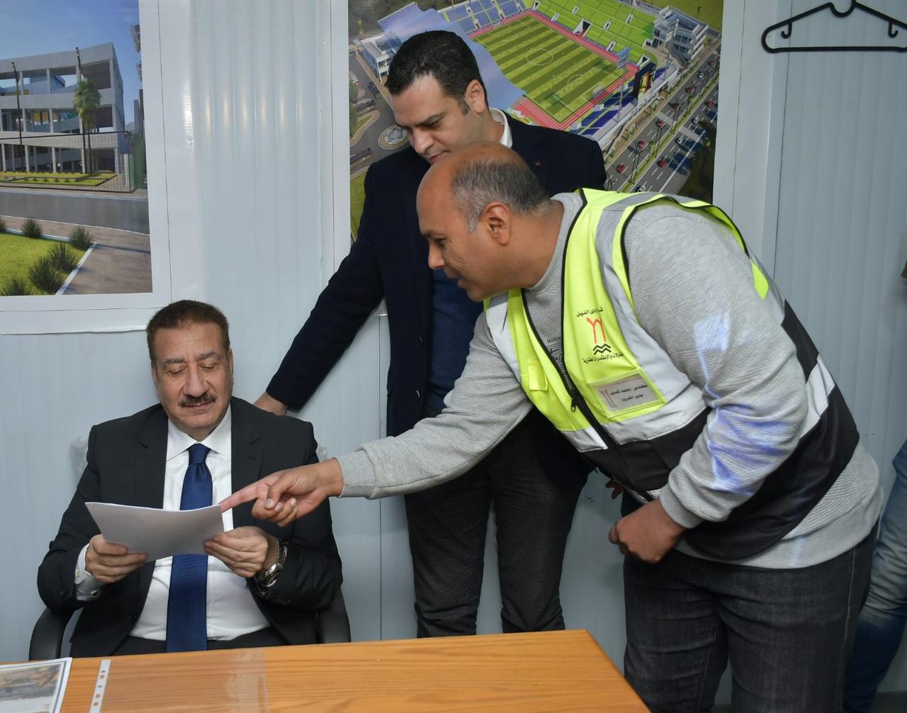 وخلال اجتماع موسع عُقد داخل الاستاد، استمع المحافظ إلى شرح تفصيلي حول مستجدات التنفيذ من المهندس محمد كساب والمهندس محمد القاضي مديري المشروع، حيث تم التأكيد على الانتهاء من 100% من الأعمال الإنشائية، ووصول نسبة الإنجاز الإجمالية إلى نحو 80%، إلى جانب استعراض المخطط الهندسي الكامل ومكونات المشروع المختلفة