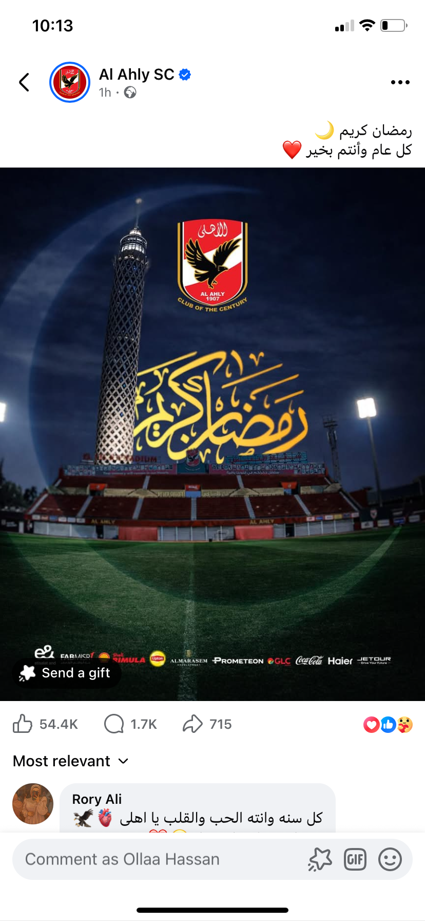 وكتب الاهلي :"رمضان كريم كل عام وأنتم بخير