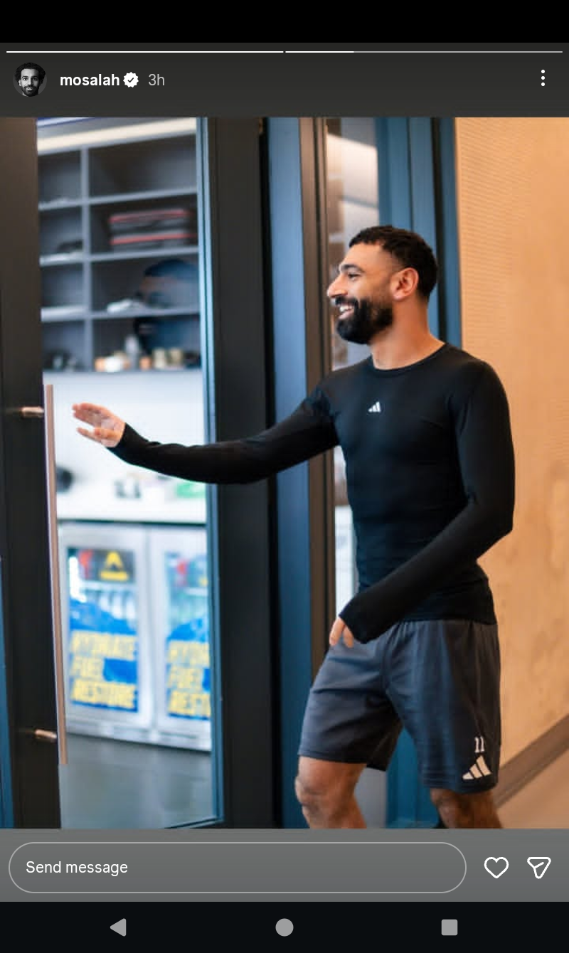 وظهر صلاح في الصورة من مرانه ليفربول اليومي، بملابس رياضية.