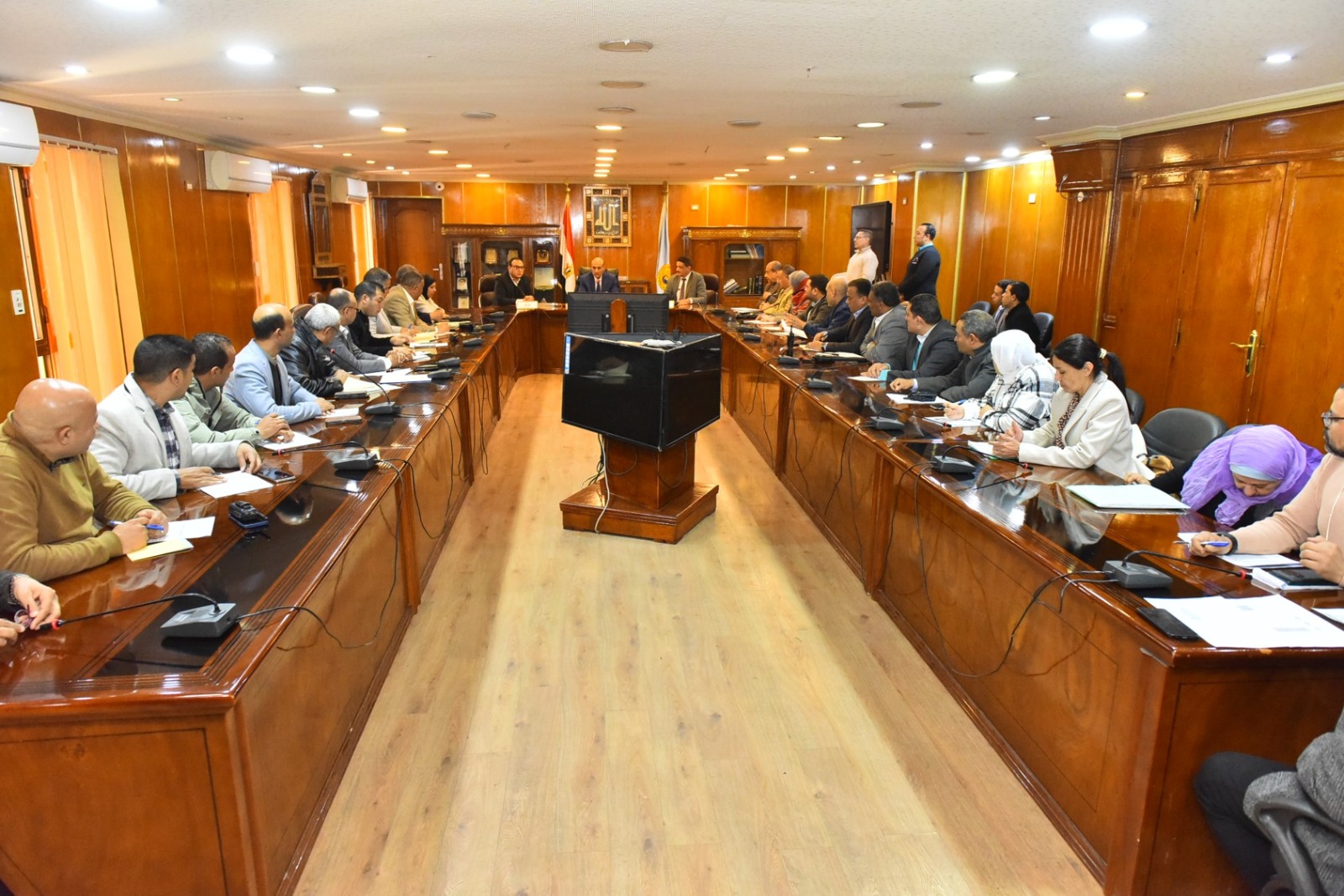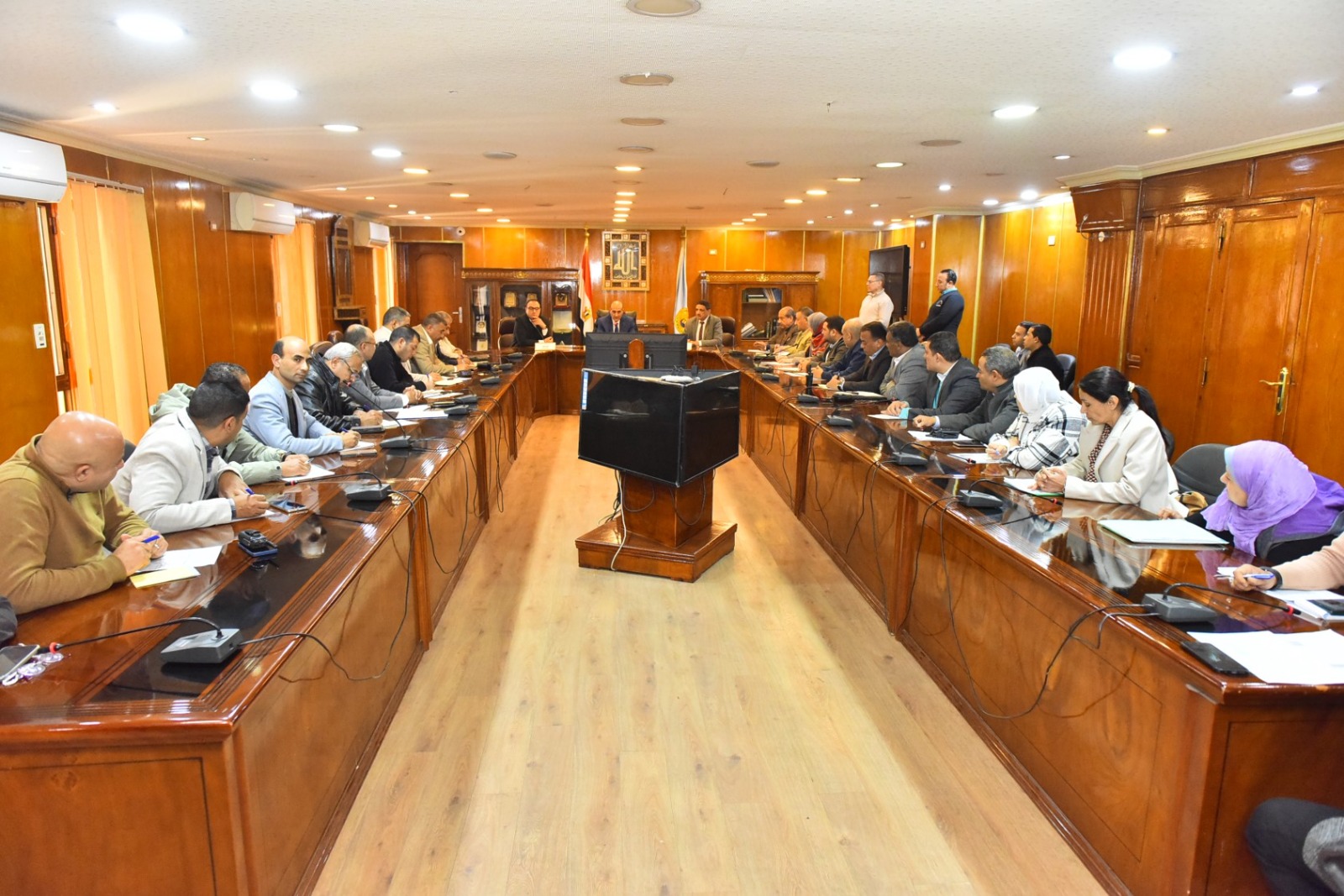 شهد الاجتماع حضور الدكتور مينا عماد نائب المحافظ، والمحاسب عدلي أبو عقيل السكرتير العام، و خالد عبد الرؤوف السكرتير العام المساعد، ورؤساء المراكز والأحياء، ومديري الإدارات المعنية ومنظومات العمل الإلكترونية.
