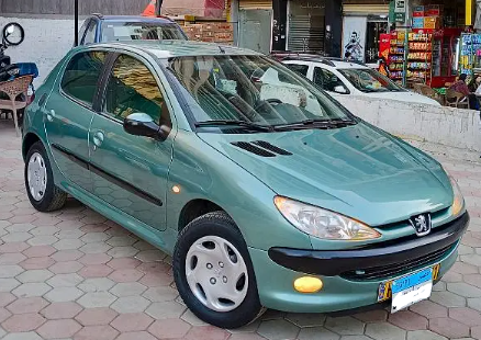 تباع سيارة بيجو 206 موديل 2002 باللون الأخضر، وبها محرك سعة 1400 سي سي، ومتصل بها علبة تروس مانيوال، وتمكنت من قطع مسافة 200 ألف/كم، ولا يوجد بالسيارة دهانات داخلية، وبها رخصة سارية .