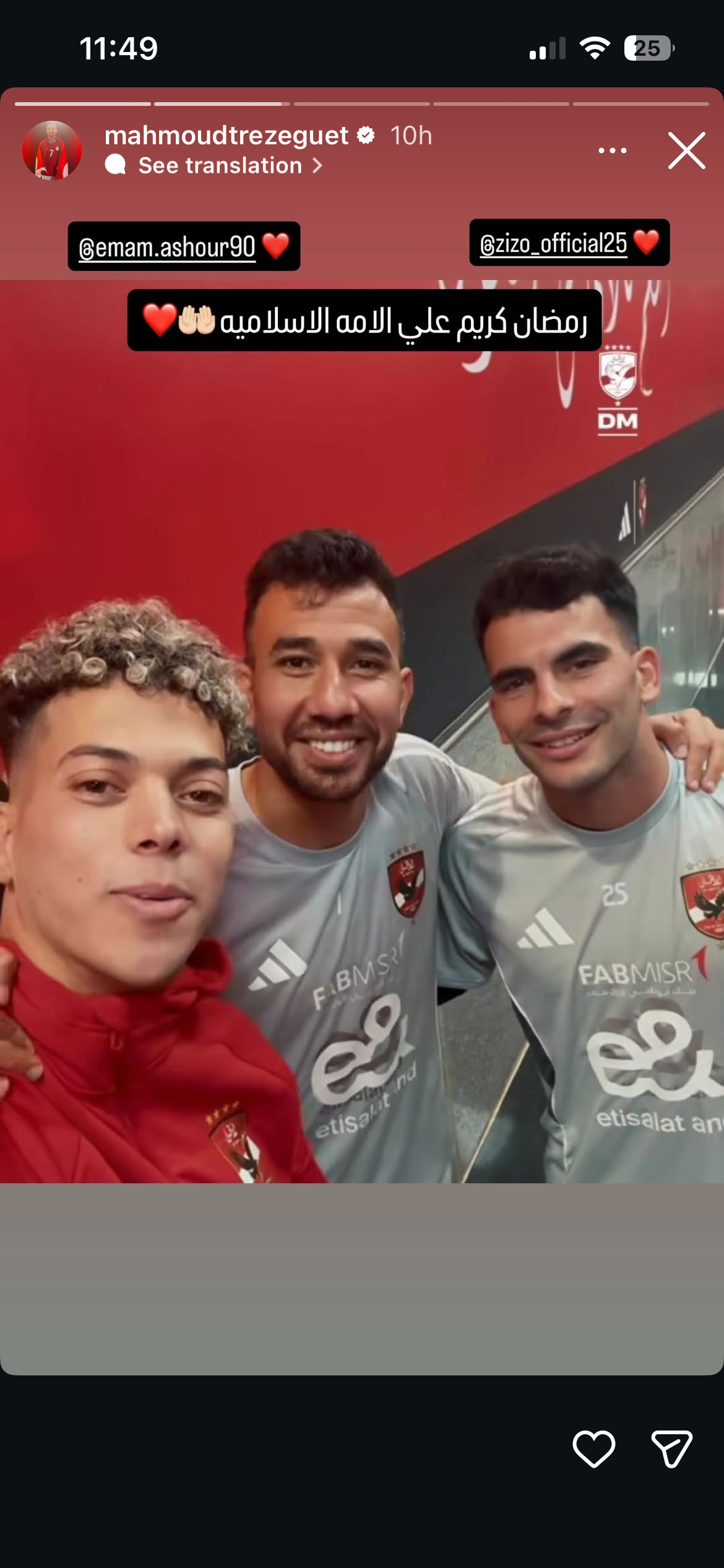 شارك محمود تريزيجيه لاعب النادي الأهلي صورة تجمعه بلاعبي الفريق إمام عاشور وزيزو، عبر حسابه على موقع التواصل الاجتماعي انستجرام.