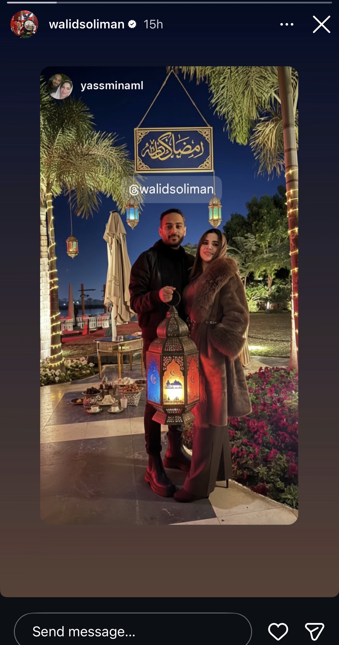 وظهر وليد سليمان حاملا فانوس رمضان مهنئا متابعيه بالشهر الكريم.