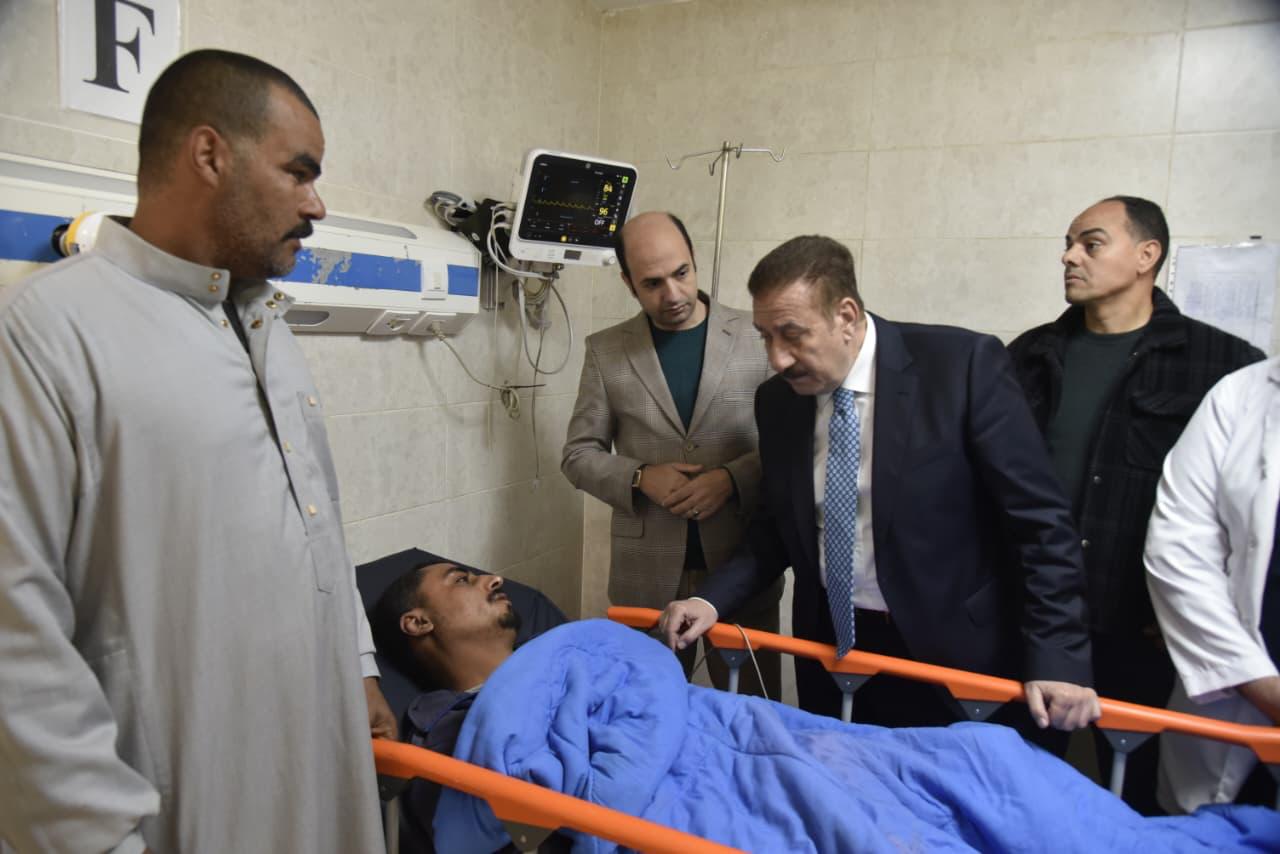 وخلال الزيارة، حرص المحافظ على تفقد المصابين والاطمئنان على حالتهم الصحية من خلال الاستماع إلى شرح تفصيلي من الأطباء القائمين على علاجهم بشأن طبيعة الإصابات والإجراءات الطبية المتبعة، مؤكدًا على توفير كافة أوجه الدعم والرعاية الصحية اللازمة لهم حتى تماثلهم الشفاء.