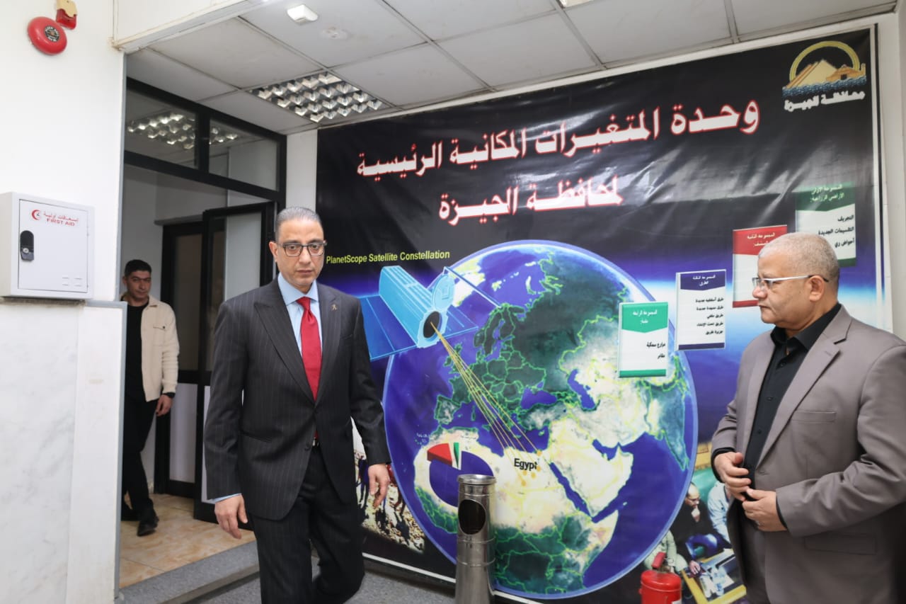 كما حرص محافظ الجيزة على معاينة أجهزة وإمكانات المركز والوسائل المستخدمة في العمل مؤكدًا أهمية البيانات والمعلومات الدقيقة، وخرائط المرافق تحت الأرض، ومخططات الأعمال الإنشائية لمشروعات البنية الأساسية، وذلك خلال تفقده إدارات ومكاتب الجهاز.