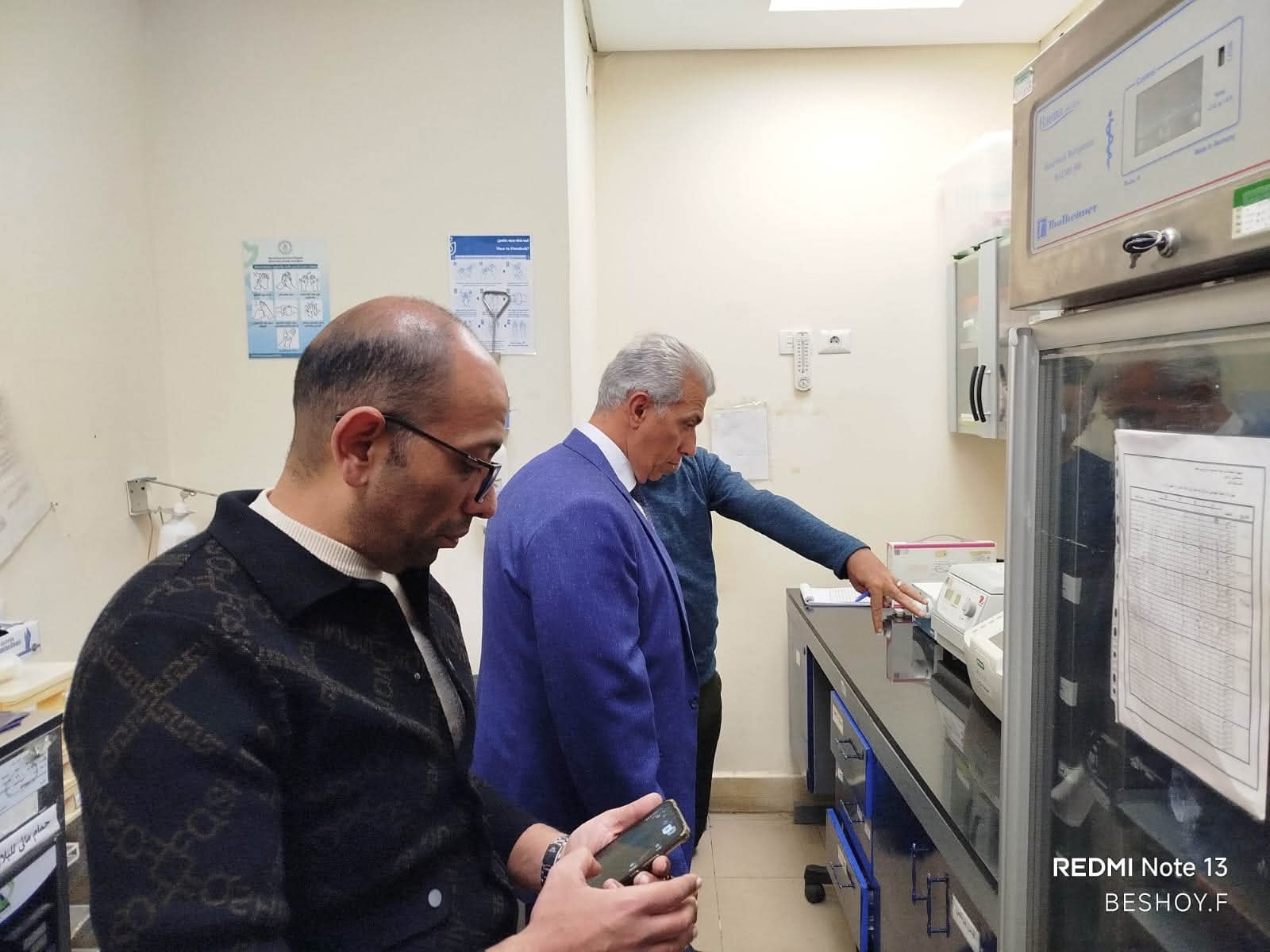 كما حرص رئيس الحي على التأكد من جاهزية بنك الدم بالمستشفى ومدى توافر اكياس الدم والبلازما الموجودة به ،
