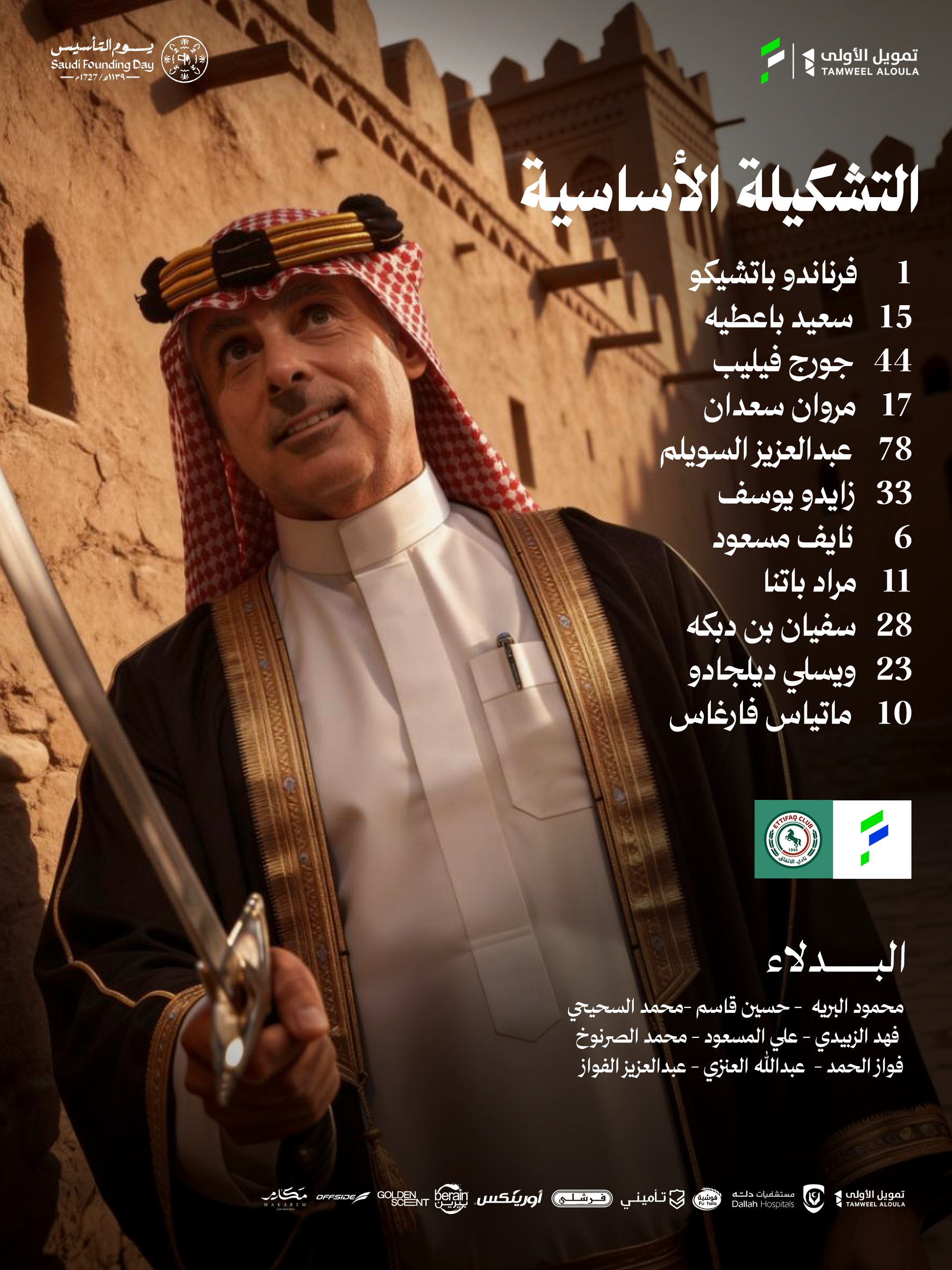 أعلن الجهازان الفنيان لفريقي الاتفاق والفتح السعوديان التشكيل الرسمي لمواجهتهما فى المباراة التى تجمعهما على ملعب إيجو بالدمام ضمن منافسات الجولة الـ 23 فى الدوري السعودي.