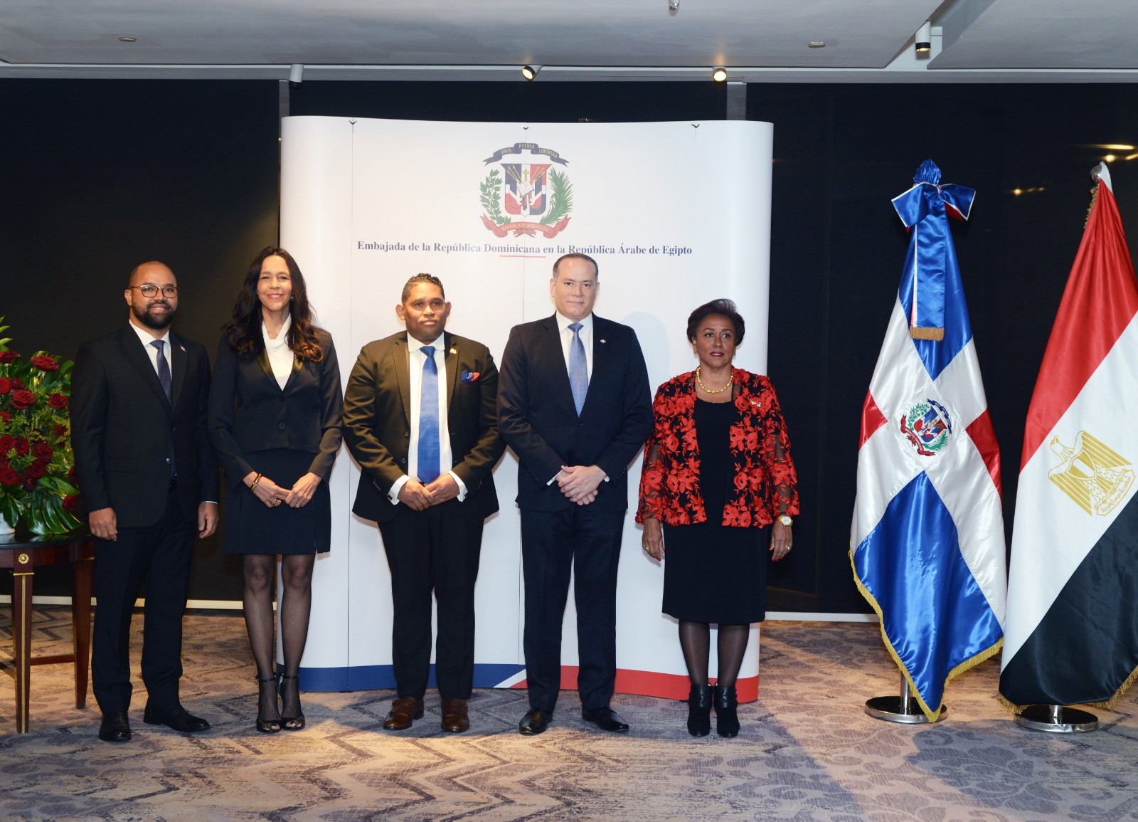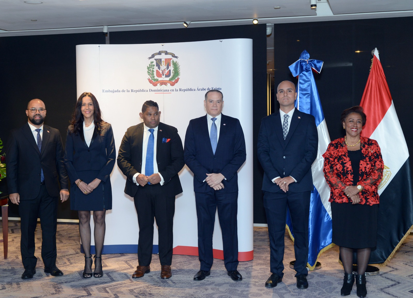 حضر إحتفالية سفارة دولة الدومينيكان الفنان القدير حسين فهمي رئيس مهرجان القاهرة السينمائي الدولي والفنان تامر عبدالمنعم رئيس البيت الفني للفنون الشعبية والإستعراضية، السفير أشرف منير نائب وزير الخارجية ومساعد الوزير لشئون دول أمريكا الجنوبية وأمريكا الوسطى والكاريبي ومجموعة من الدبلوماسيين في من جمهورية مصر العربية ودولة الدومينيكان.