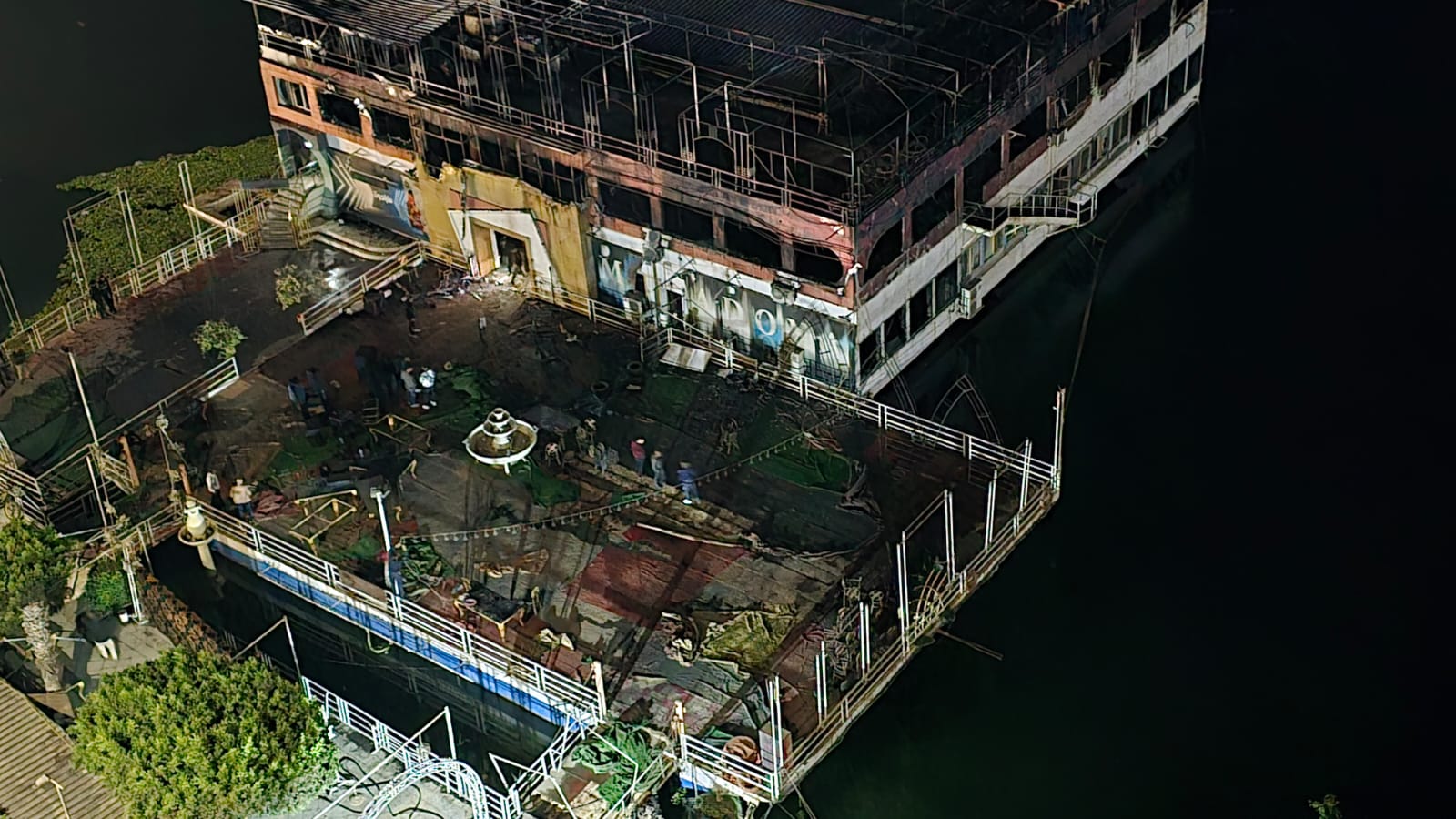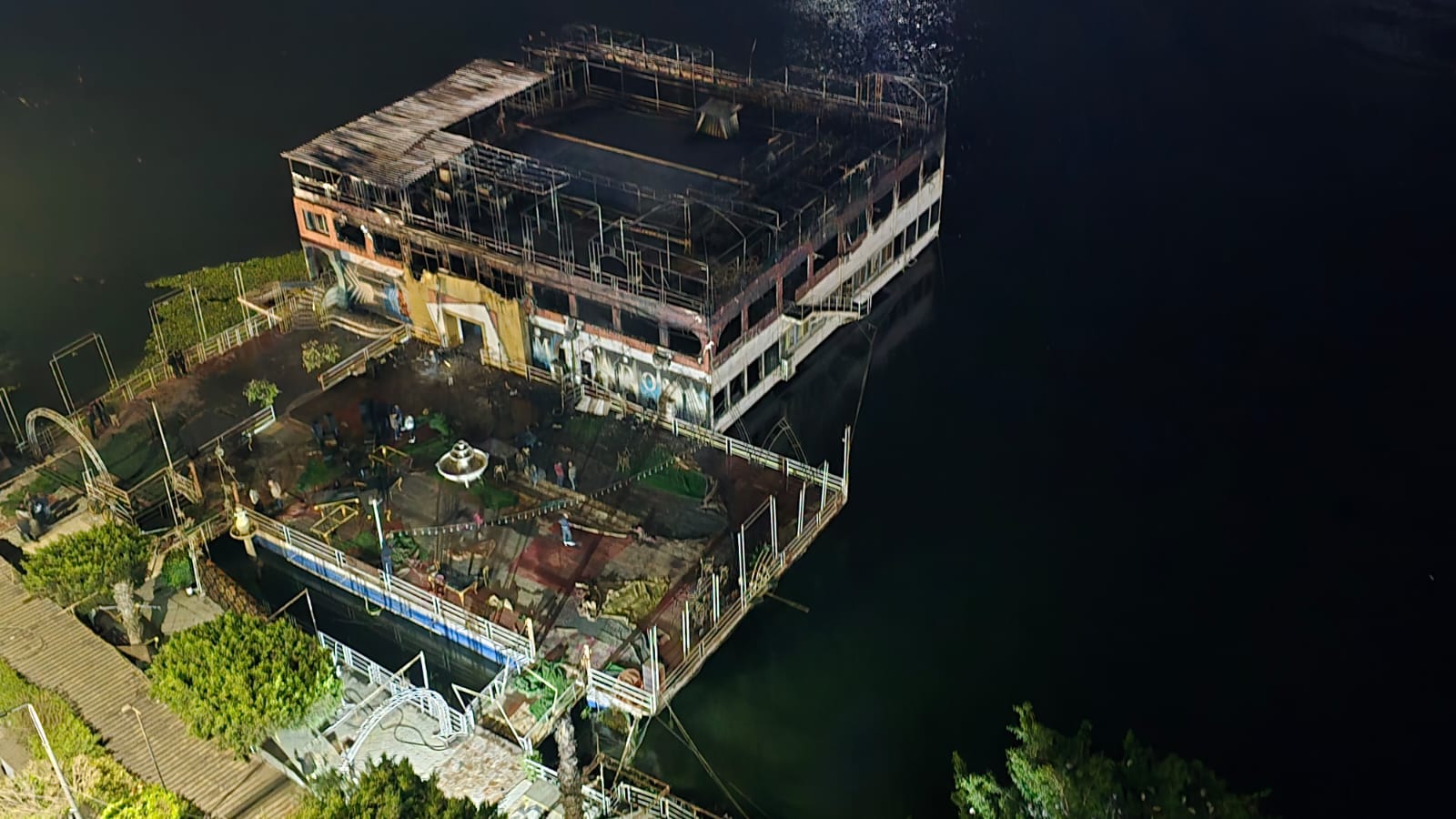 وتبين وفقا للمعلومات الأولية أن العائمة النيلية مرخصة ومكونة من 3 طوابق؛ الطابق الأول يضم قاعة للأفراح والحفلات، والطابق الثاني يضم مكاتب إدارية والطابق الثالث «كافيه»، وأن الحريق نشب في الطابق الثاني وامتد لباقي الطوابق، ما أدى إلى احتراق العائمة بالكامل.