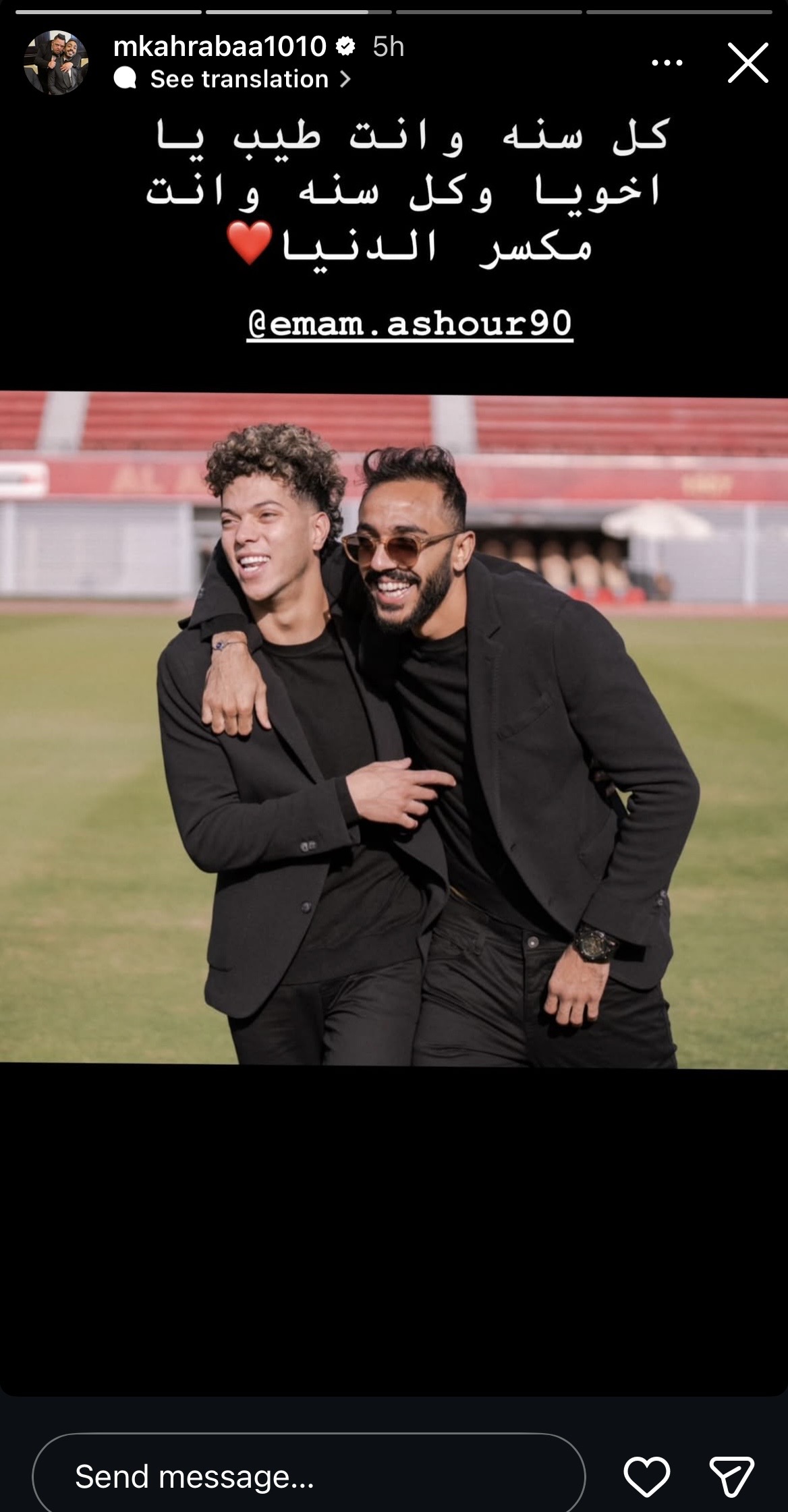 وكتب كهربا عبر ستوري حسابه على انستجرام: “كل سنة وانت طيب يا اخويا وكل سنة وانت مكسر الدنيا”.