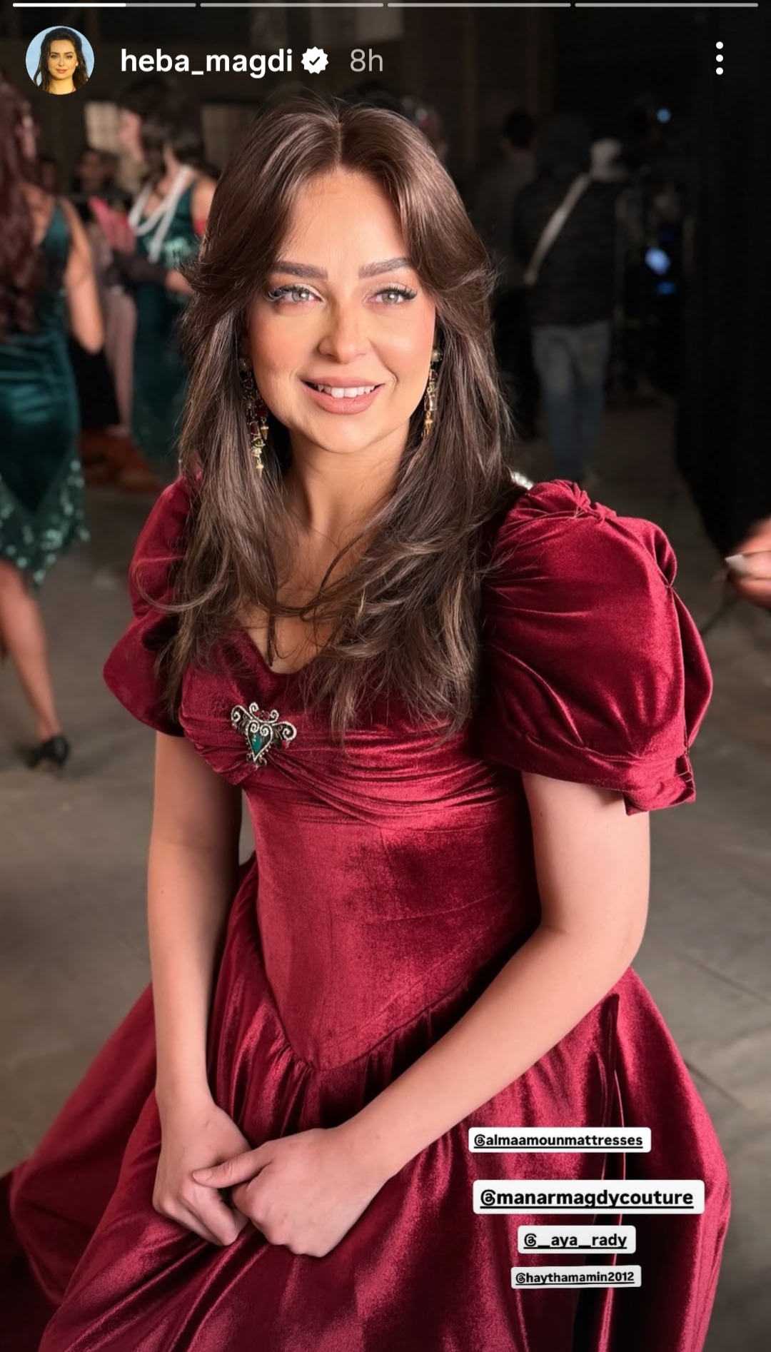 وظهرت هبة مجدي بإطلالة جذابة لافته،مرتدية فستان قطيفه محتشم باللون الاحمر، ليكشف عن جمالها وأناقتها.