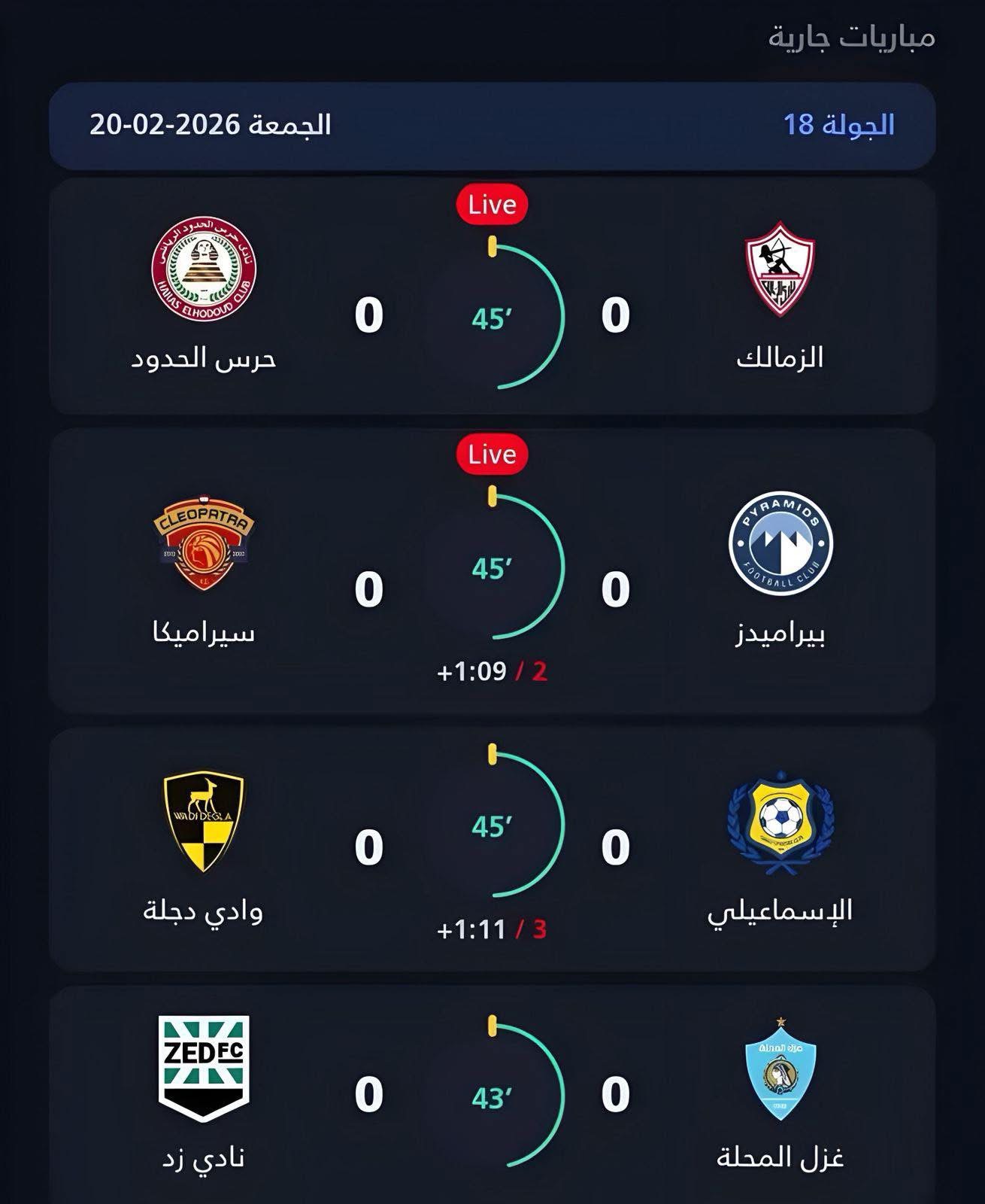 نتيجة الشوط الأول من مباراة الزمالك وحرس الحدود