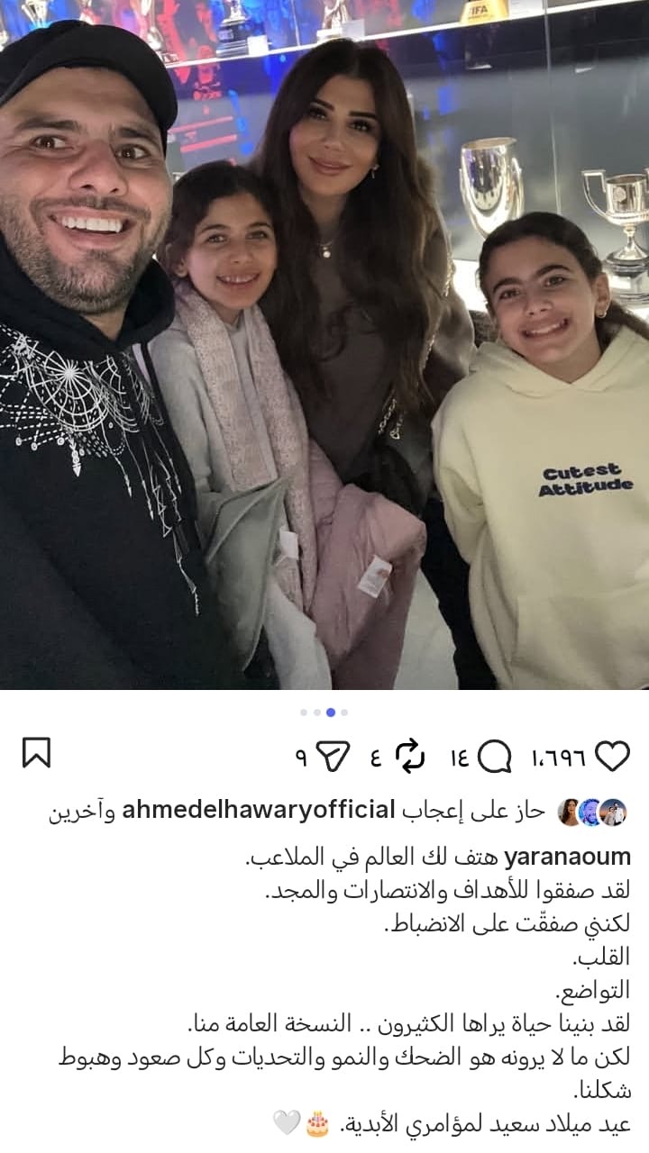 وكتبت يارا لعماد متعب: “هتف لك العالم في الملاعب لقد صفقوا للانتصارات والأهداف والمجد لكني صفقت على الانضباط والقلب والتواضع لقد بنينا حياة يراها الكثيرون النسخة العامة منا عيد ميلاد سعيد لمؤامري الأبدية”.