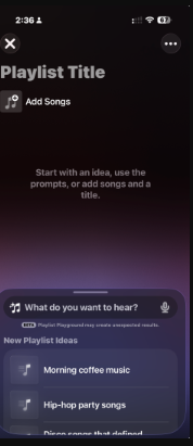 أبرز التحسينات ظهرت في Apple Music، مع إضافة ميزة جديدة باسم Playlist Playground تعتمد على الذكاء الاصطناعي، تتيح للمستخدمين إنشاء قائمة تشغيل مكونة من 25 أغنية استنادا إلى أوامر نصية، كما يمكن للمستخدمين تعديل النتائج واختيار غلاف مناسب لكل قائمة.