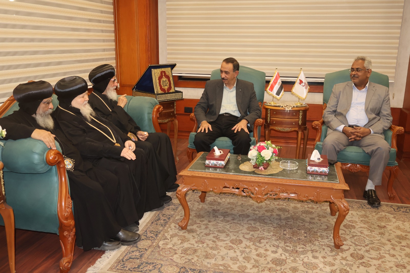 استقبل اللواء طارق راشد، محافظ سوهاج، بمكتبه بديوان عام المحافظة، أصحاب النيافة الأساقفة والمطارنة، لتقديم التهنئة بمناسبة توليه مهام منصبه محافظًا لسوهاج، بحضور كمال سليمان، نائب المحافظ، والدكتور محمد حلمي، السكرتير العام المساعد.