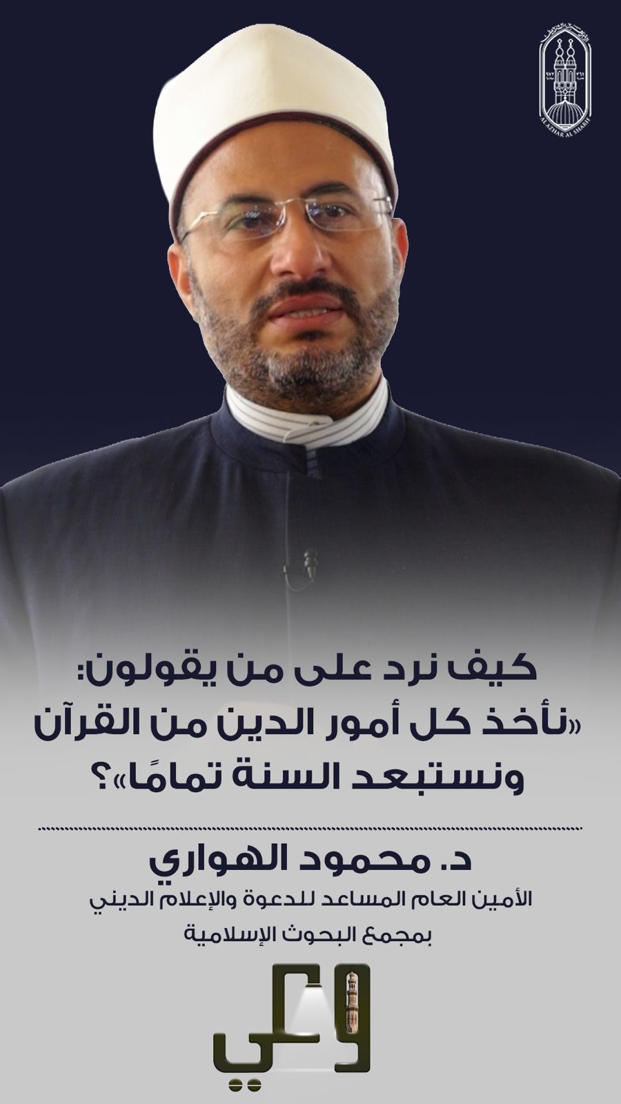 وقام بالرد على هذه الشبهة الدكتور محمود الهواري، الأمين المساعد لشؤون الدعوة بمجمع البحوث الإسلامية، حيث أوضح عددا من الأدلة الشرعية والعقلية التي تثبت حجية السنة النبوية وكونها المصدر الثاني للتشريع، وأنها ليست منفصلة عن القرآن، بل هي المفسرة له والموضحة لأحكامه.