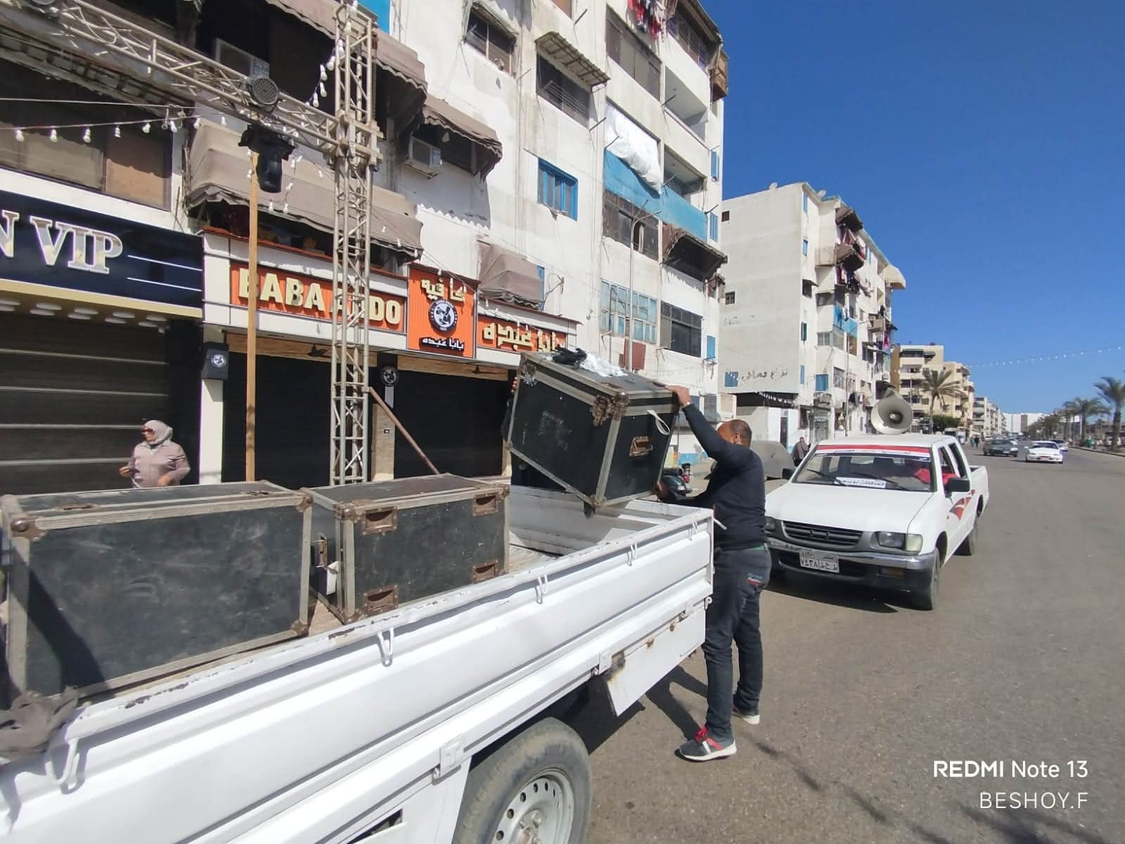 وتم التبيه في نطاق الحي بضرورة الالتزام بحدود الترخيص وعدم غلق الطرقات، واتخاذ الاجراءات القانونية لعدم عودة المخالفة مرة اخرى ،وتم التنبيه على الجميع بمراعاة حق المواطنين في شارع خالي من الاشغالات .