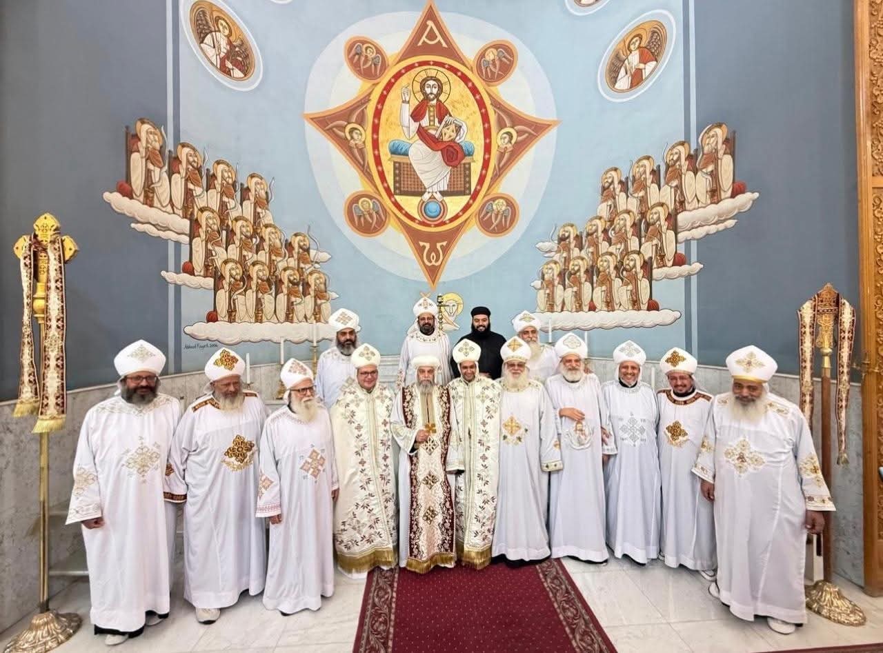 وسام نيافته عقب صلاة الصلح الشماس باخوميوس سمير كاهنًا جديدًا باسم القس إبراهيم، والشماس باسم مجدي كاهنًا جديدًا باسم القس اسحق، للخدمة بكنيسة السيدة العذراء والقديس الأنبا بيشوي بحي الصداقة الجديدة.