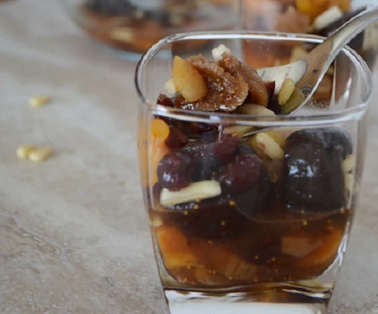 8- يوضع الخشاف في الثلاجة حتى وقت التقديم، ويمكن تزيينه بالمكسرات وقطع الفاكهة الطازجة مثل العنب والمشمش لإضفاء مذاق أغنى وقيمة غذائية أكبر.