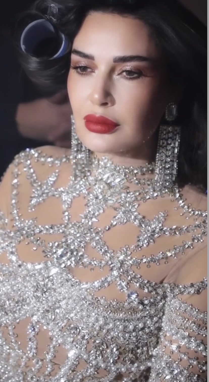 وظهرت سيرين عبد النور وهي ترتدي فستانا طويلا بتصميم ضيق باللون الفضي ، استطاع أن يبرز قوامها بشكل مميز وجذاب، الفستان جاء مزين بالكامل بنقوش من الكريستالات اللامعة.