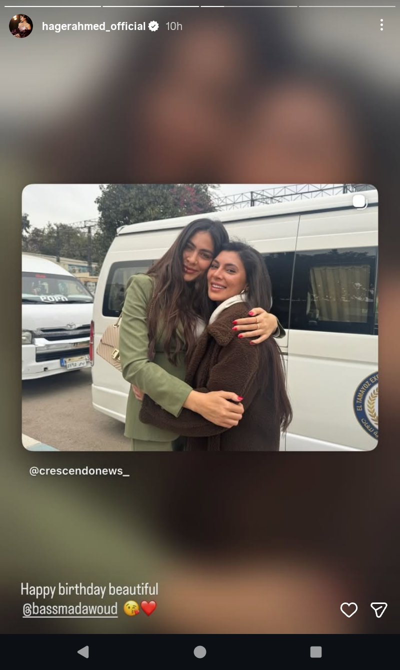 وظهرت هاجر في الصورة رفقة الفنانة بسمة داوود من داخل لوكيشن التصوير
