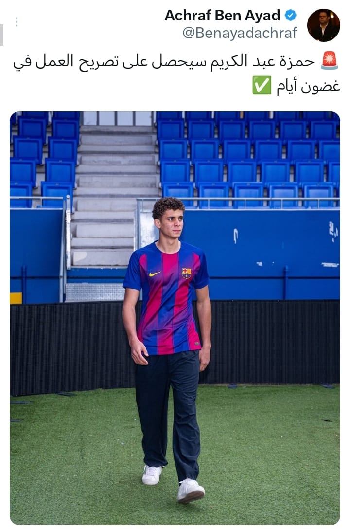 وكتب الصحفي المغربي أشرف بن عياد عبر حسابه على “x”: "حمزة عبد الكريم سيحصل على تصريح العمل في غضون أيام".