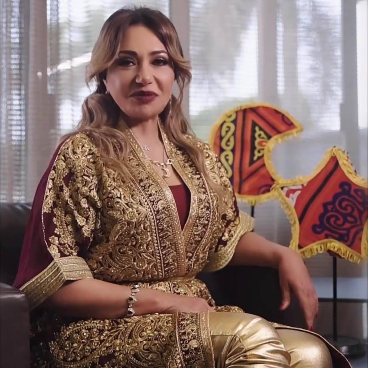 الإطلالة جاءت بتصميم عصري يجمع بين التراث والفخامة، مع لمسات معدنية جذابة أضفت إشراقة شبابية على وجهها، ما جعلها تبدو أصغر بما يقارب 20 سنة.