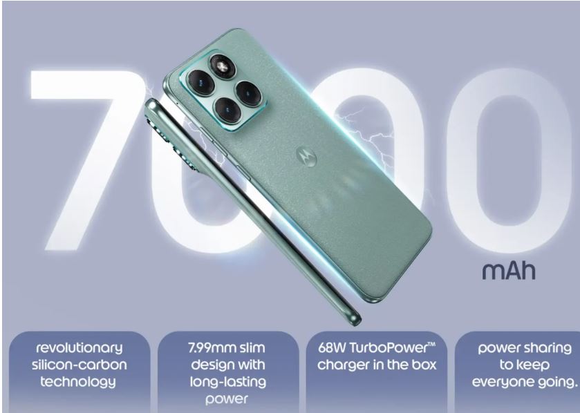 ومن المتوقع وفقا للتسريبات أن يأتي هاتف Edge 70 Fusion ببطارية ضخمة سعتها 7000 مللي أمبير مع دعم الشحن السريع بقوة 68 واط. ورغم احتوائه على بطارية ضخمة من السيليكون والكربون، فإن سمك الهاتف يجب أن لا يتجاوز 7.99 ملم. وسيتوفر بثلاثة ألوان