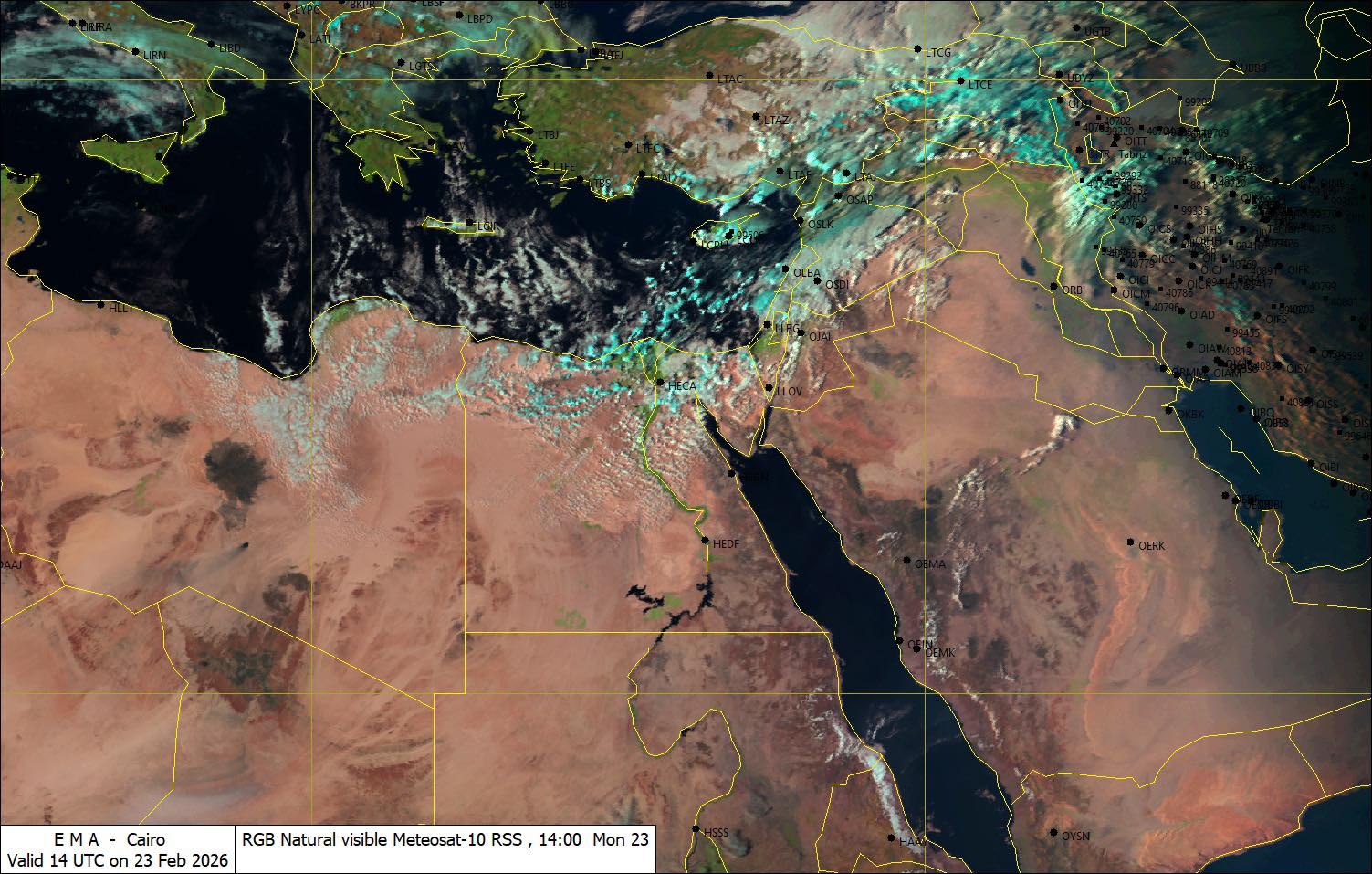 أشارت آخر صور الأقمار الصناعية، التابعة لهيئة الأرصاد، إلى استمرار تكاثر السحب الممطرة على شمال البلاد حتى القاهرة الكبرى ومدن القناة ومناطق من شمال الصعيد، تزداد شدتها على شرق القاهرة ومناطق من شرق البلاد .